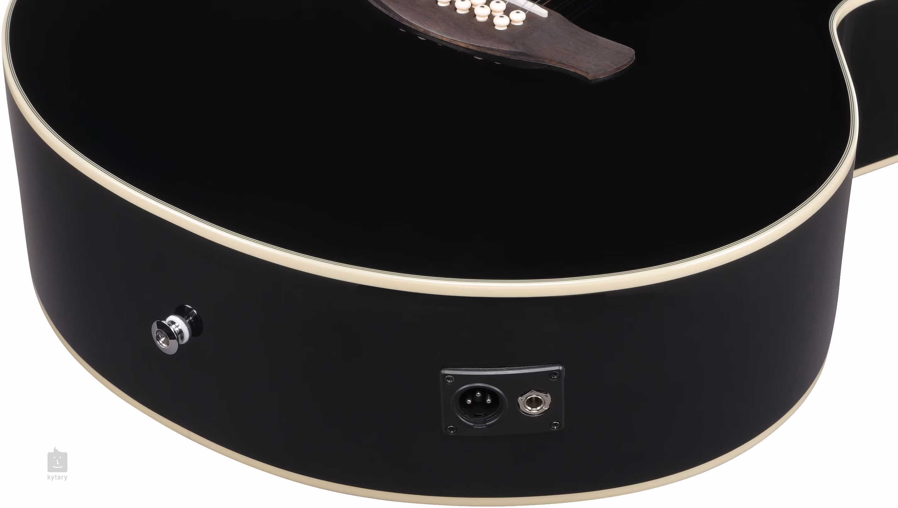 Ibanez AJ7012M1E-BK je dvanáctistrunná elektroakustická kytara s mohutným tělem typu Jumbo a velkým zvukem. Přední deska nástroje je zhotovena z masivu smrku Sitka, zadní deska a luby jsou vyrobeny z vrstveného okoumé. Ke krku z exotického dřeva nyatoh je přilepen hmatník z fíkovníku osazený dvaceti pražci. Orientaci na hmatníku usnadňují dekorativní polohové bloky z imitace perleti.