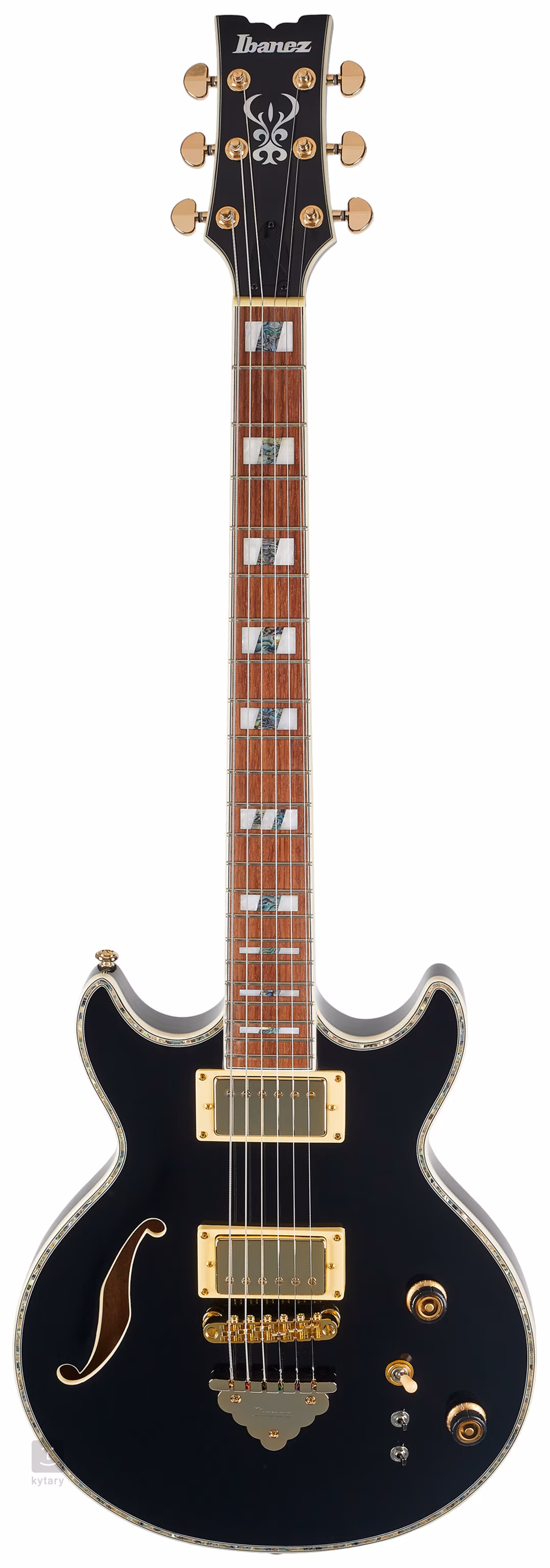 Ibanez AR520H Black je elektrická kytara v double cut designu s pololubovou konstrukcí. Tělo nástroje je zhotoveno z javorového topu, zadní desky z okoumé a komorovaného javorového těla. Ke krku ze tří kusů javoru je přilepen hmatník z jatoby osazený dvaadvaceti pražci velikosti Medium. Orientaci na hmatníku usnadňují polohové bloky z imitace perleti a abalone.