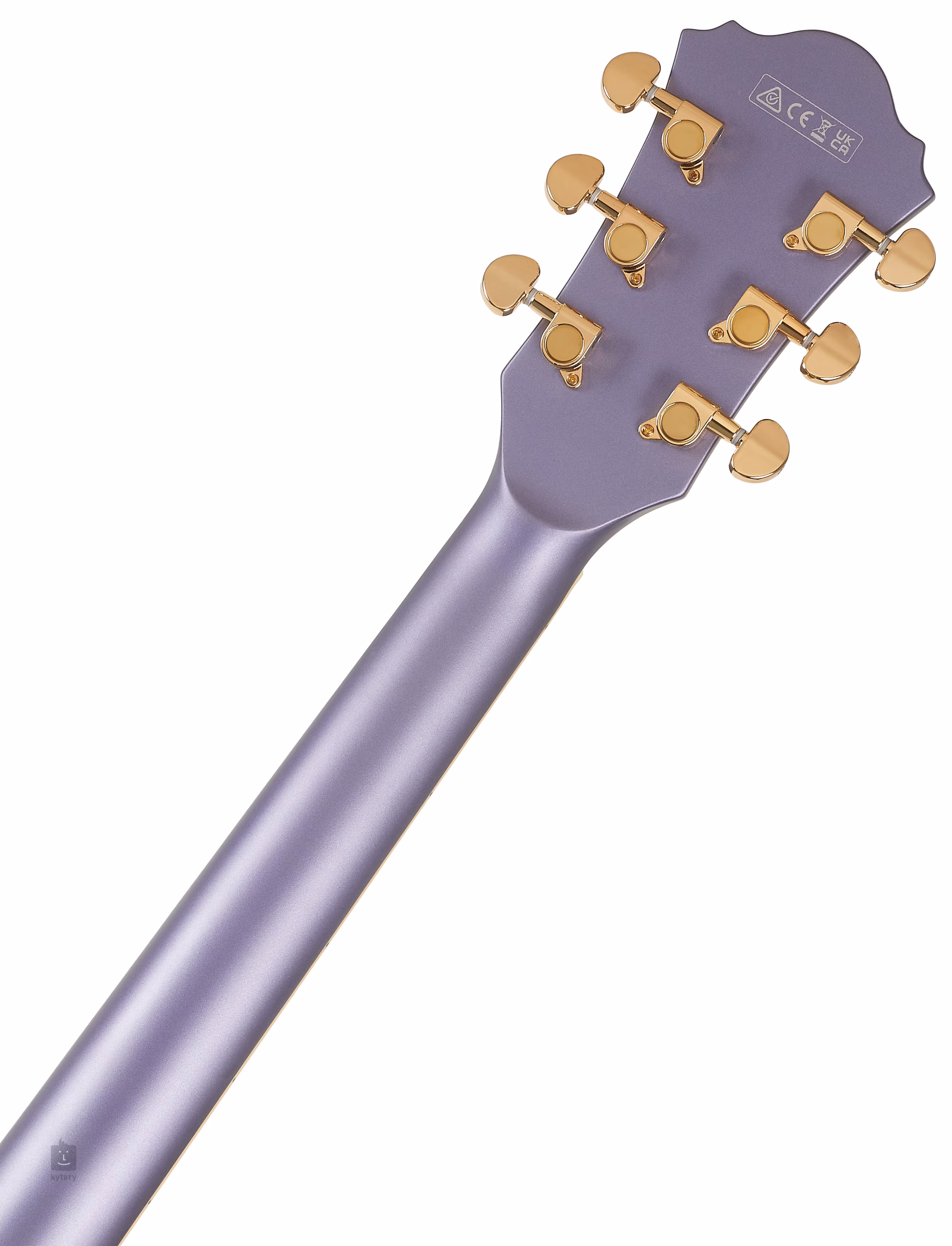Tělo pololubového double-cut modelu AS73G Metallic Purple je zhotoveno z vrstvené lípy. Ke krku z exotického dřeva nyatoh je přilepen palisandrový hmatník osazený dvaadvaceti pražci velikosti Medium. Orientaci na hmatníku usnadňují polohové bloky z imitace perleti.