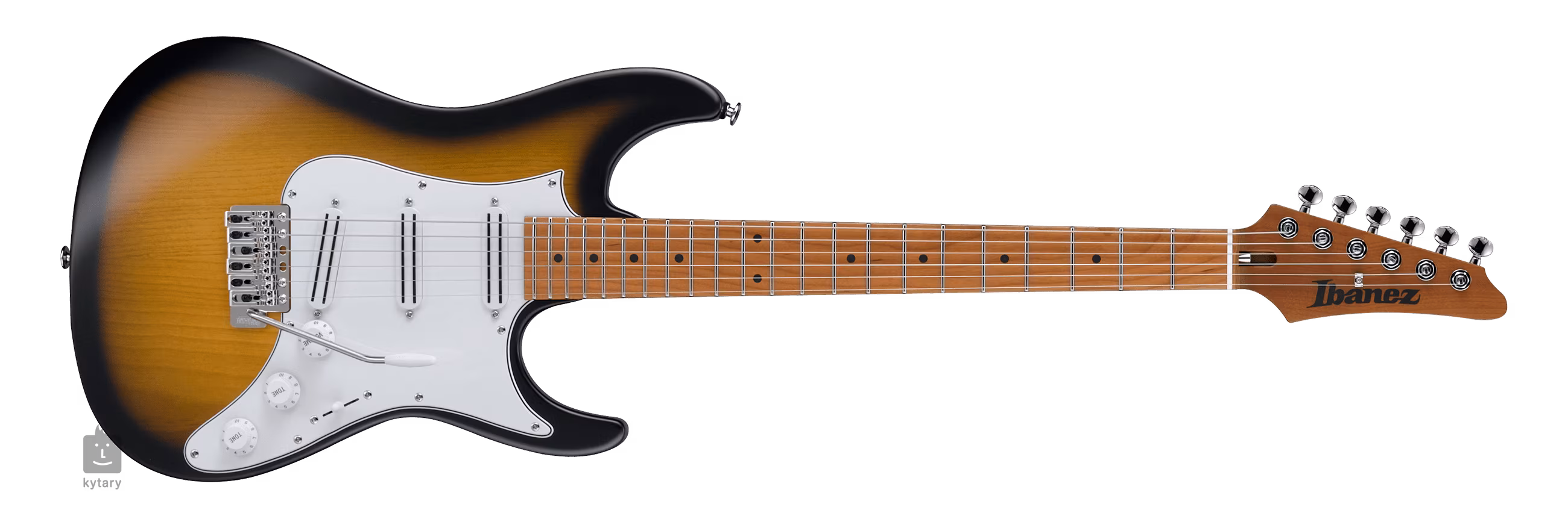Tři pasivní snímače DiMarzio The Cruiser s keramickými magnety a mírnějším výstupním signálem poskytují kytaře parádní dynamický zvuk, který bychom mohli přirovnat k tradičním single-coil Strat snímačům na steroidech bez jejich (pro někoho milovaného, pro jiné otravného) humu. K úpravám zvuku slouží dva potenciometry hlasitosti, tónová clona a pětipolohový přepínač snímačů. Stabilitu ladění zaručuje uchycení strun v uzamykatelných mechanikách Gotoh Magnum Lock a v jednozvratném tremolu Wilkinson-Gotoh VSVG. Stylový vzhled kytary podtrhuje barevná úprava Sunburst Flat, chromovaný hardware a praktický pickguard.