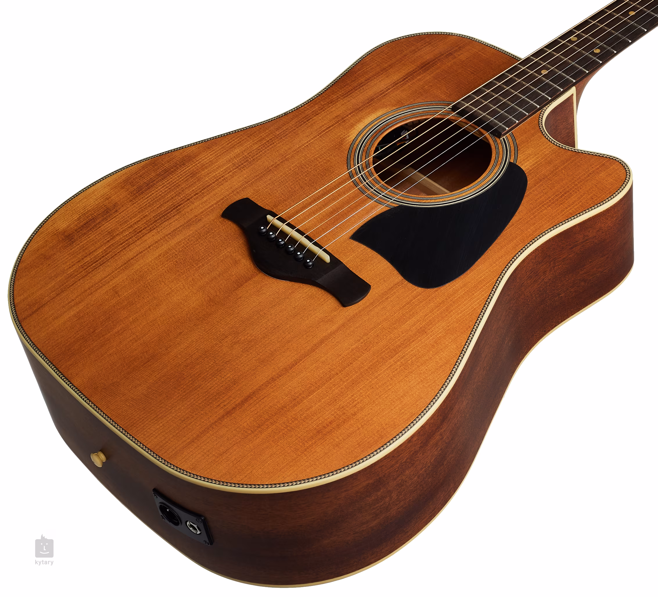 Přední deska modelu Dreadnought AVD11CE-ANS je zhotovena z masivního kavkazského smrku, zadní deska a luby z překližovaného okoumé. Ke krku z exotického dřeva nyatoh je přilepen hmatník z ovangkolu osazený dvaceti pražci. Orientaci po ploše hmatníku usnadňují perleťové poziční tečky (Gold Mother-of-Pearl).