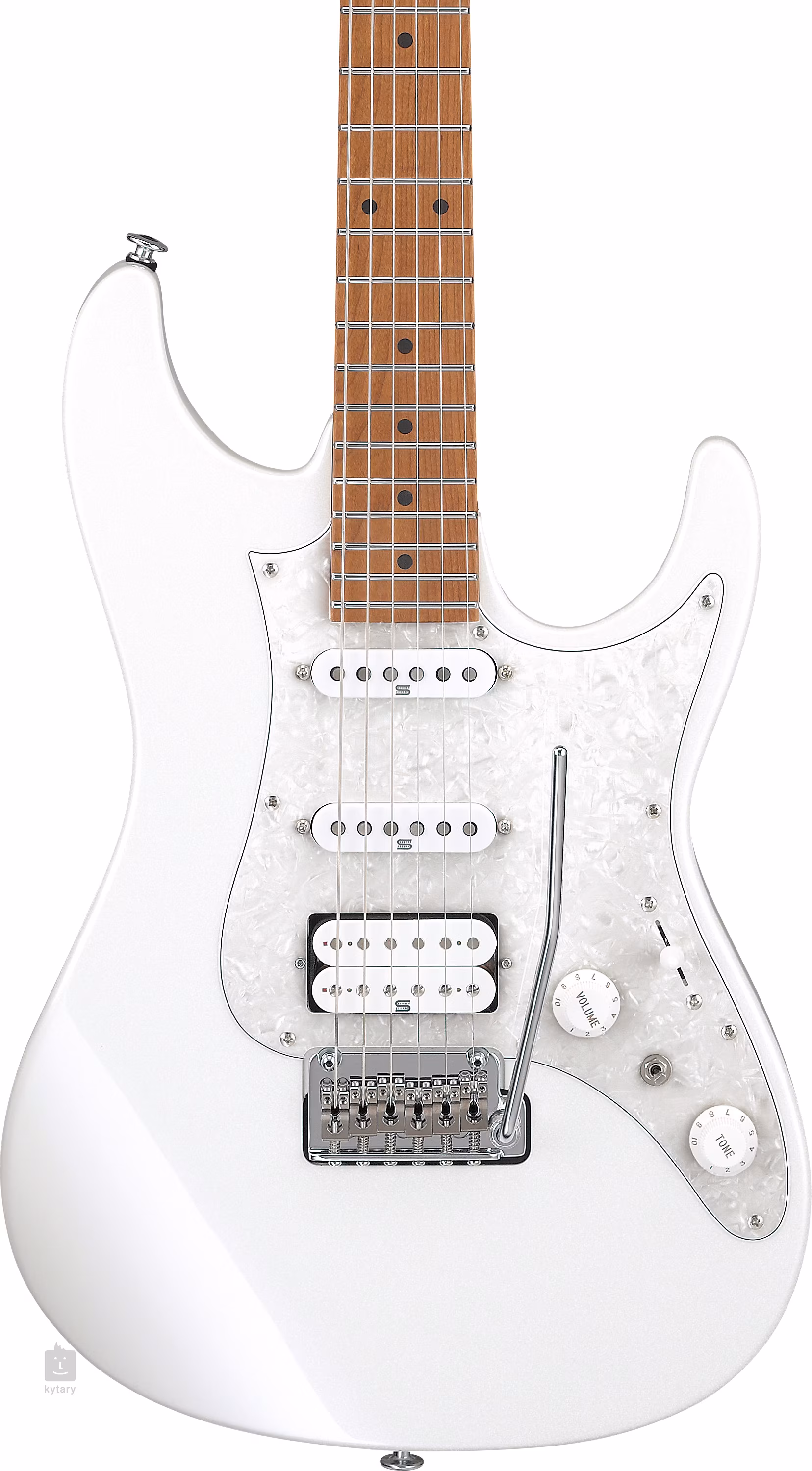 Ergonomicky tvarované tělo elektrické kytary AZ2204 Pearl White je zhotoveno z olše. Javorový krk a hmatník nástroje prošly před kompletací tepelnou úpravou (S-TECH treatment), která zlepšuje jejich stabilnost, odolnost vůči vodě a teplotním výkyvům a zároveň dodává kytaře vzhled a feel vyzrálých/hraných nástrojů. Upravené hrany pražců (Prestige fret edge treatment), zaoblená patka krku (Super All Access Neck Joint) a dvaadvacet pražců z nerezové oceli velikosti Jumbo vám poskytnou maximální herní komfort. Perfektní orientaci na hmatníku i za šera zaručují luminiscenční tečky na boku.