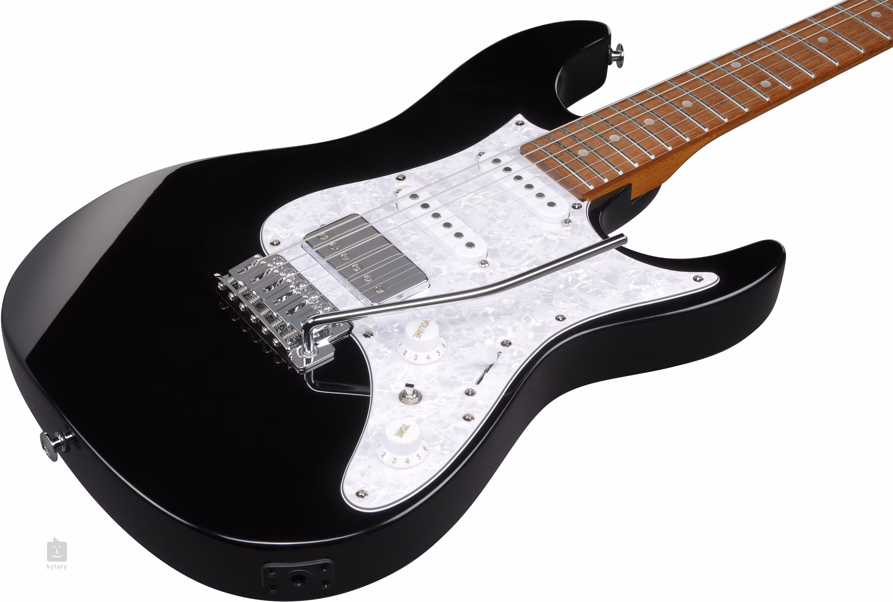 Struny jsou uchyceny v chromovaných uzamykatelných mechanikách a tremolu T106.