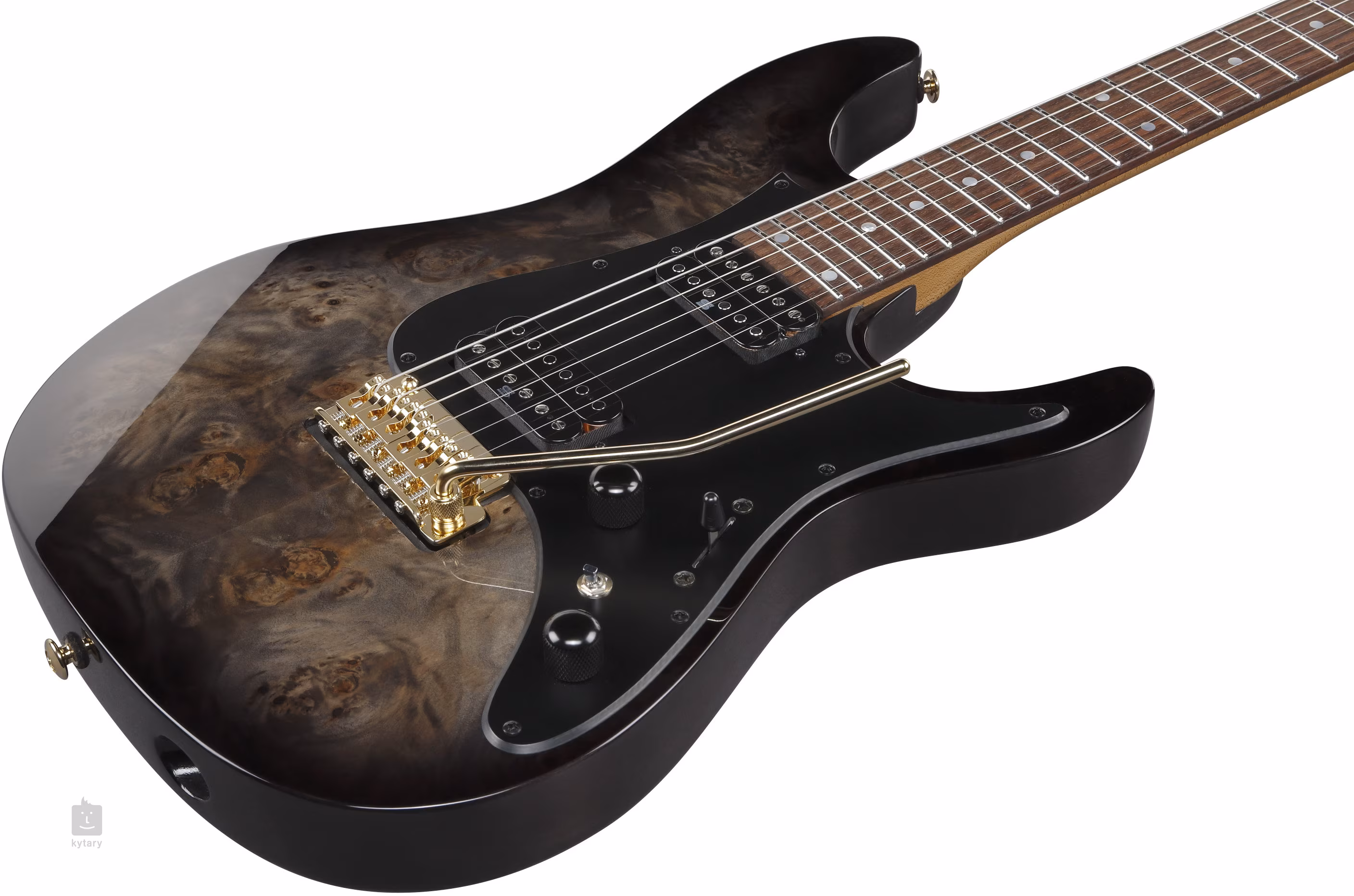 Lipové tělo kytary AZ41P1PB Transparent Gray Burst zdobí vrchní dýha z kořenice topolu (poplar burl) a barevná úprava Transparent Gray Burst. Díky ergonomickému tvarování zadní části těla vám kytara skvěle padne do ruky. K javorovému krku je přilepen palisandrový hmatník osazený čtyřiadvaceti pražci z nerezové oceli velikosti Jumbo. Tepelná úprava krku zlepšuje jeho stabilnost, životnost, odolnost vůči vodě a teplotním výkyvům a zároveň dodává kytaře vzhled a feel vyzrálých/hraných nástrojů. Orientaci na hmatníku usnadňují perleťové poziční tečky (Mother-of-Pearl) a luminiscenční značky na boku.