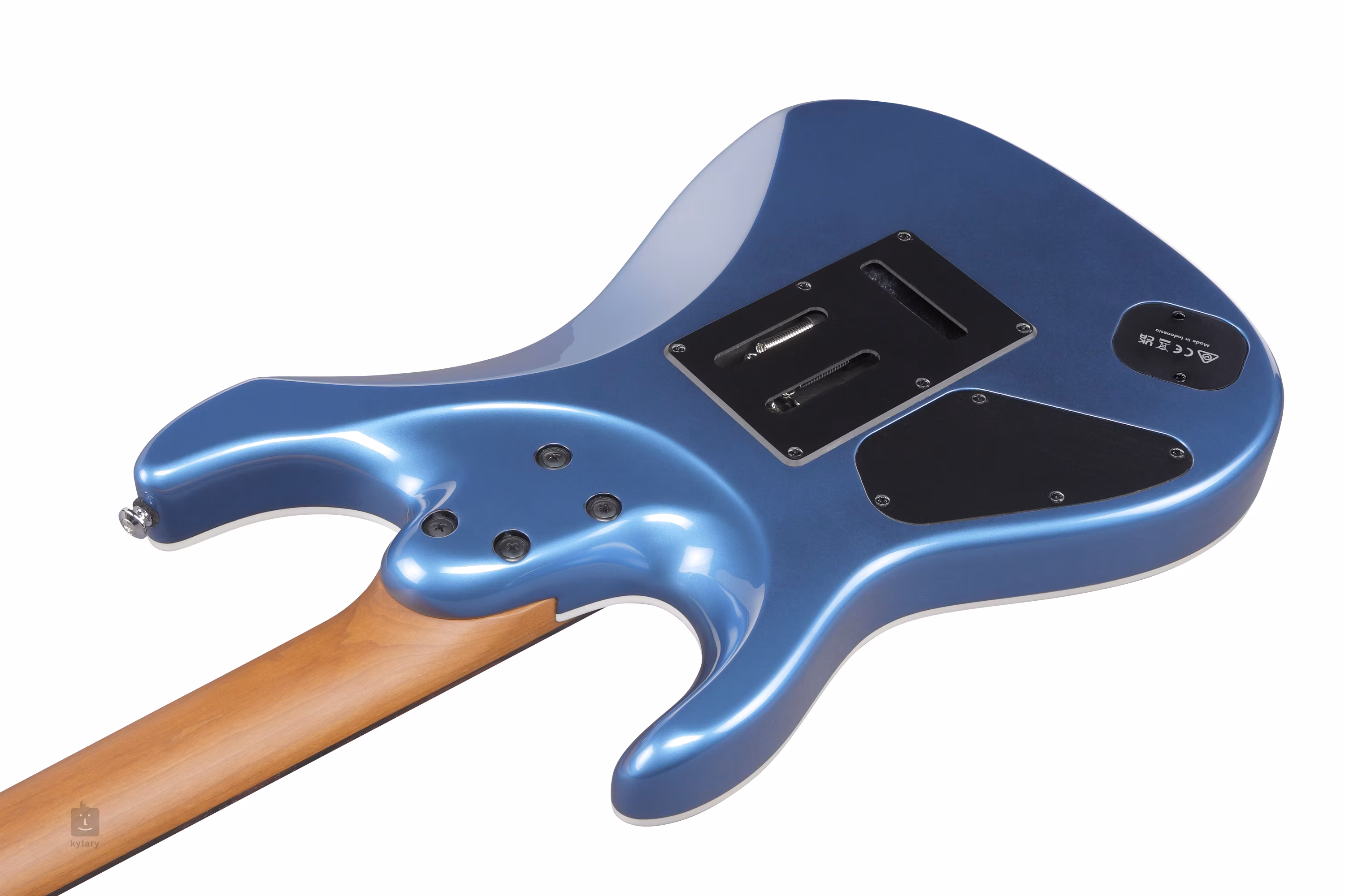 Lipové tělo kytary AZ42P1 Prussian Blue Metallic zdobí barevná úprava Prussian Blue Metallic. Díky ergonomickému tvarování zadní části těla vám kytara skvěle padne do ruky. K javorovému krku je přilepen palisandrový hmatník osazený čtyřiadvaceti pražci z nerezové oceli velikosti Jumbo. Tepelná úprava krku zlepšuje jeho stabilnost, životnost, odolnost vůči vodě a teplotním výkyvům a zároveň dodává kytaře vzhled a feel vyzrálých/hraných nástrojů. Orientaci na hmatníku usnadňují perleťové poziční tečky (Mother-of-Pearl) a luminiscenční značky na boku.