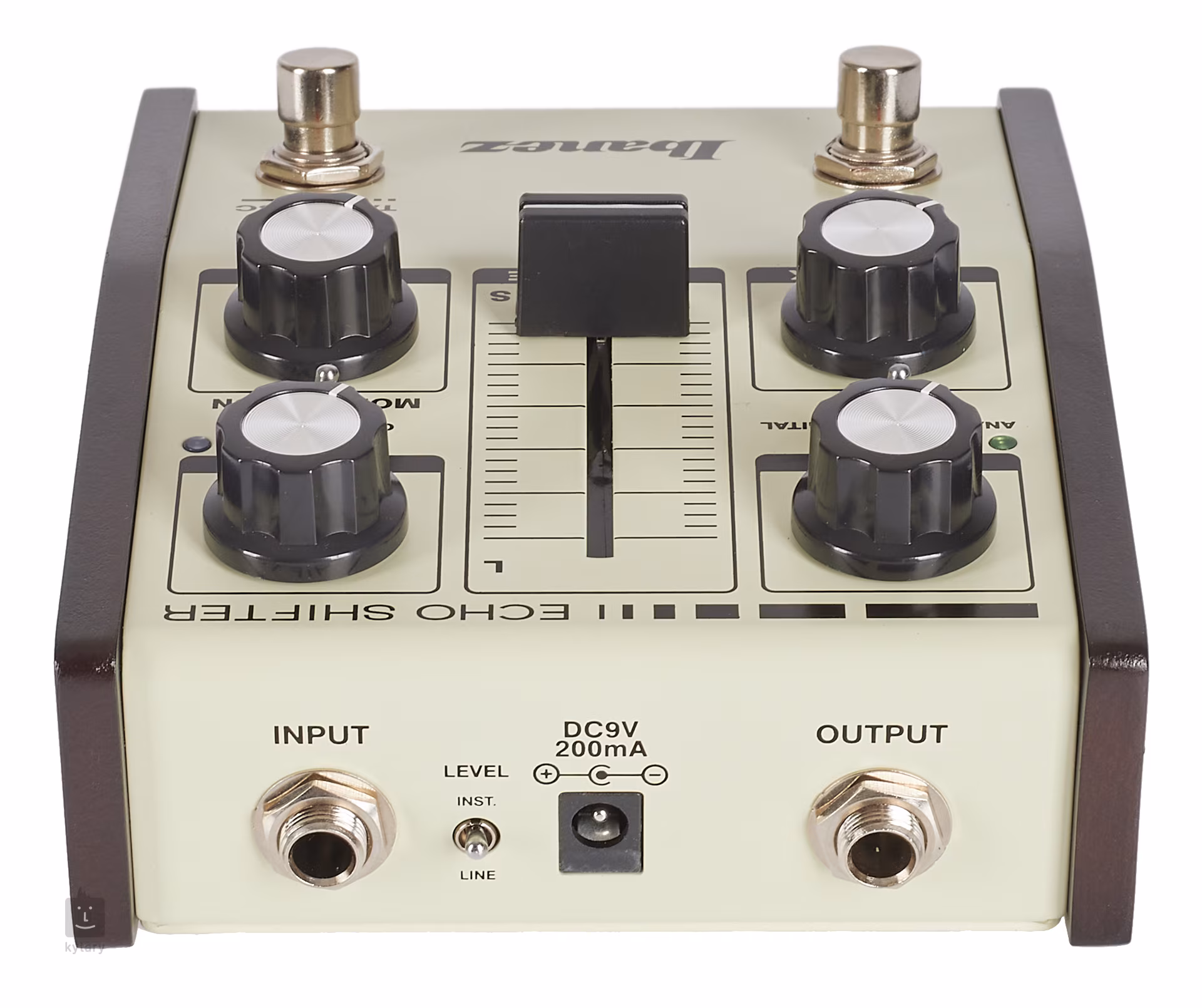 Pedálový efekt Ibanez Echo Shifter (ES3) je všestranný delay efekt s možností přidání modulace, který jistě osloví nejednoho milovníka pěkných kytarových ploch. Nabízí možnost volby mezi čistě analogovým a digitálním delayem (delay time analog 40 – 600ms, digital 40 -1500ms) a zvýraznění zvuku delaye přepínatelnou efektovou modulací. Pět hlavních ovladačů nabízí široké možnosti zvukových nastavení delay efektu a charakteru efektové modulace. Footswitch s označením FX slouží k zapínání/vypínání efektu, druhým footswitchem TAP/OSC ovládáte funkci Tap Tempo, případně přidržením přepínače necháte delay efekt oscilovat. Díky přepínači Inst/Line využijete služeb tohoto pedálu i u nástrojů s linkovou úrovní signálu (klávesy, syntezátory apod.).
