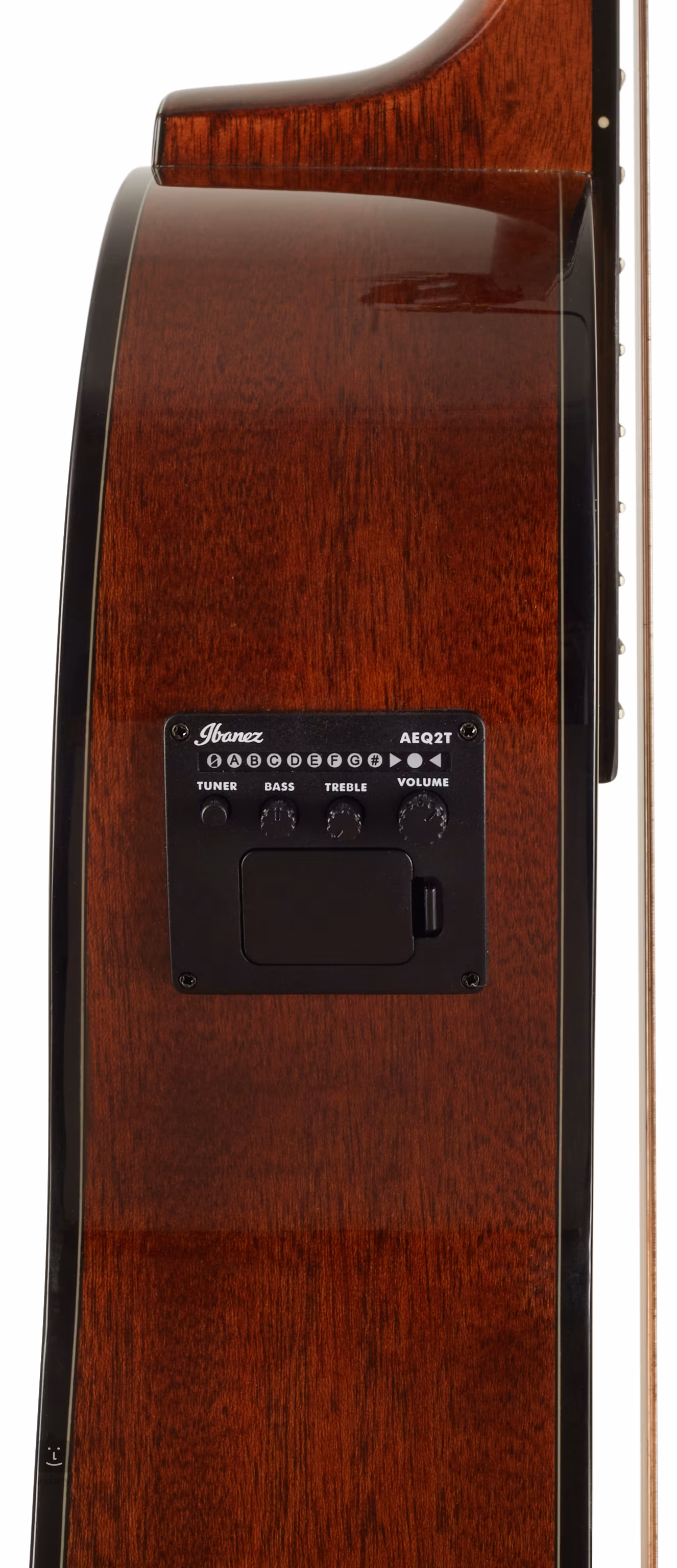 Možnost ozvučení nabízí podkobylkový piezo snímač a aktivní elektronika Ibanez AEQ-2T s dvoupásmovým ekvalizérem a zabudovanou ladičkou.