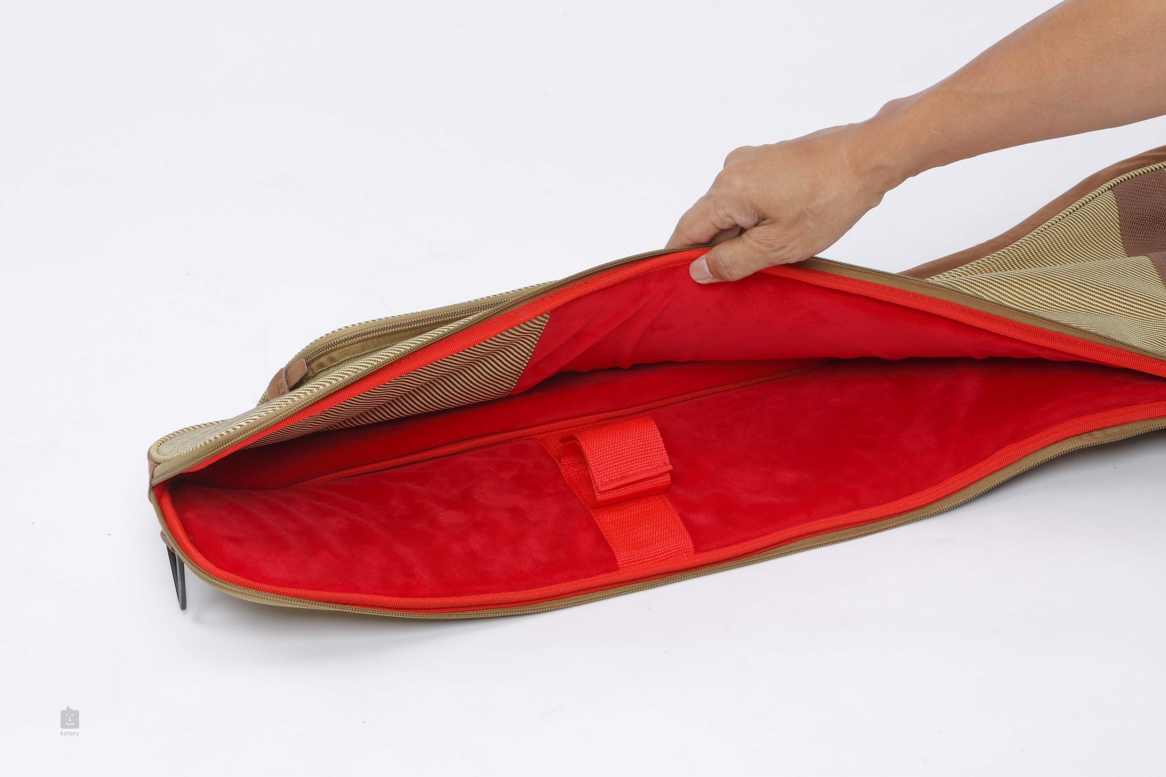 Pro ještě větší bezpečnost naleznete uvnitř obalu pásek k zafixování krku nástroje. Součástí je i popruh pro snazší přenášení a potěší také robustní zipy, které jsou barevně sladěny s látkou obalu. S tímto obalem si váš nástroj v záplavě černých gig bagů již nikdy nespletete.