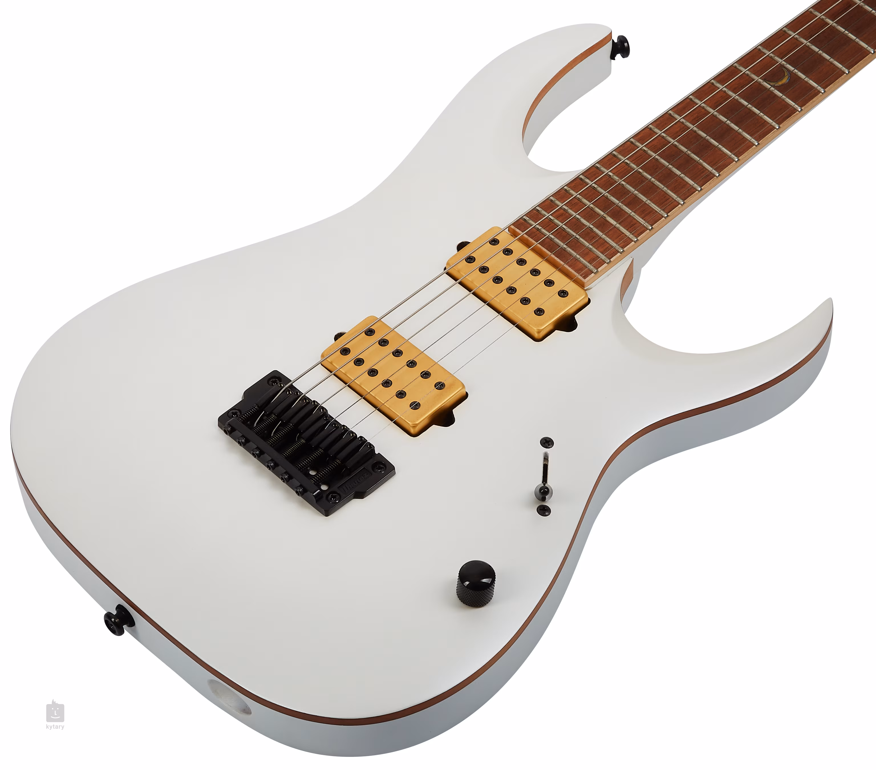 Stabilitu ladění zaručuje uchycení strun v uzamykatelných mechanikách Gotoh a pevné kobylce Gibraltar Standard II, která poskytuje každé struně optimální přenos vibrací. Vzhled nástroje podtrhuje barevná úprava Pearl White Matte, kontrastní černý hardware a ladicí mechaniky ve zlatém provedení.