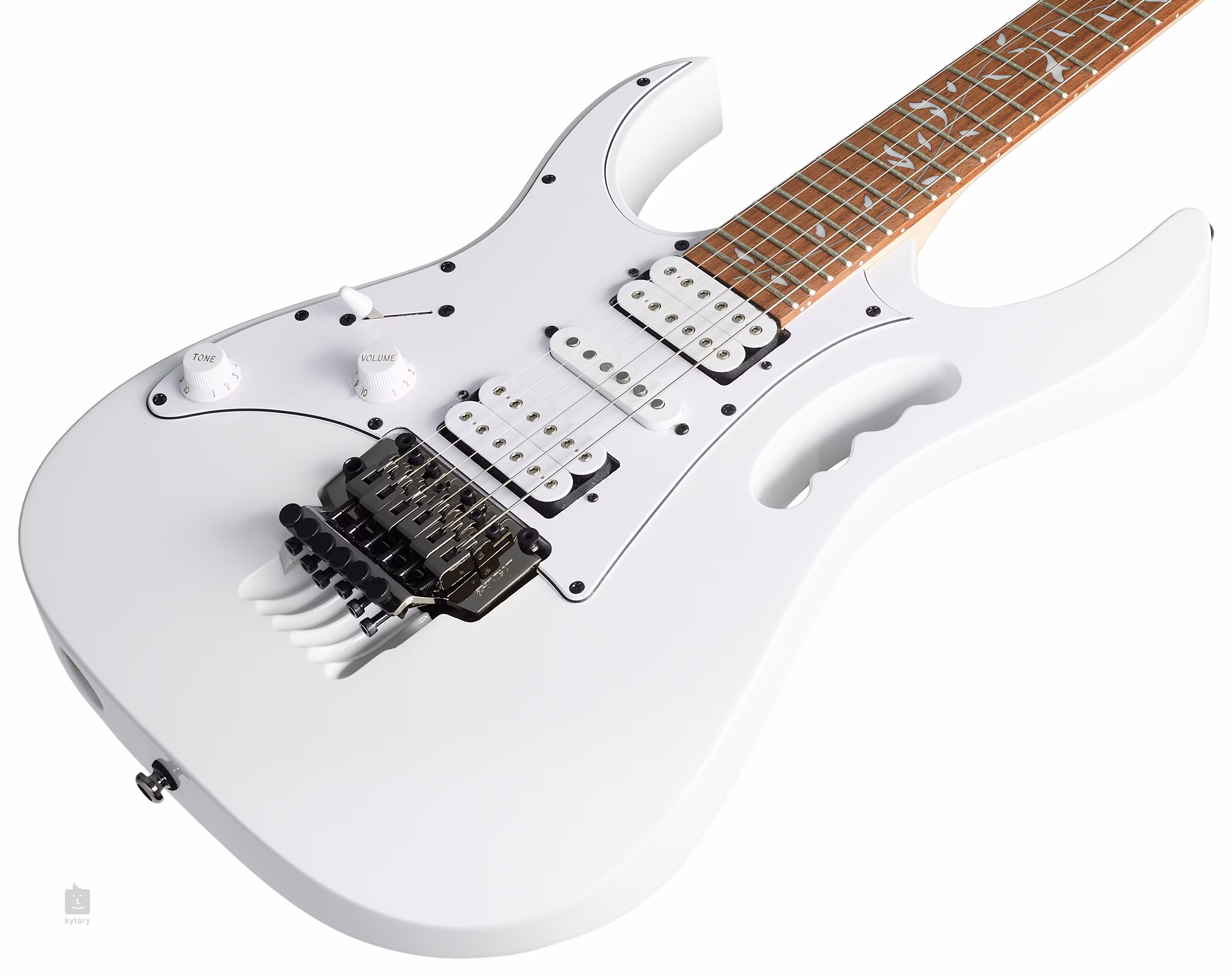 Elektrická kytara pro leváky JEMJRL White japonské značky Ibanez je signature modelem známého kytarového kouzelníka Steva Vaie. Disponuje jasnými poznávacími znaky v podobě výřezu v těle (monkey grip) a dekorativního inlaye hmatníku Tree-of-life, se kterými si okamžitě spojíte tuto osobnost.