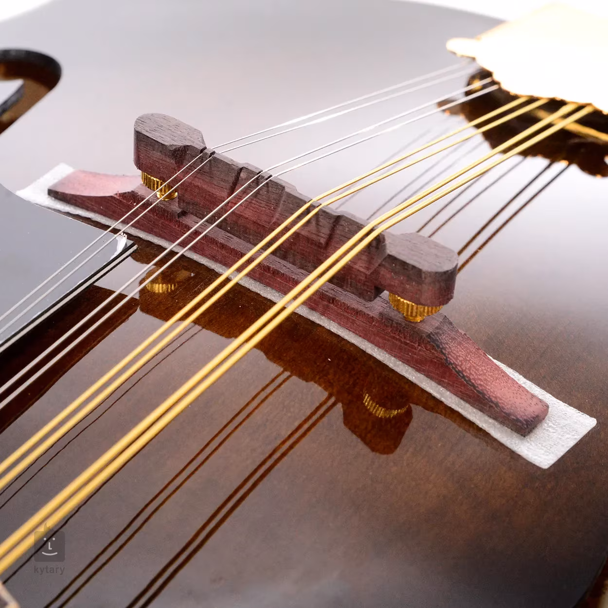 Struny jsou uchyceny v ladicích mechanikách v luxusním zlatém provedení s kolíčky z imitace perleti a přes kobylku z purpleheartu ve struníku. Pěkné zpracování podtrhuje lesklý finiš Dark Violin Sunburst, světlá obvodová lemovka a černý pickguard.