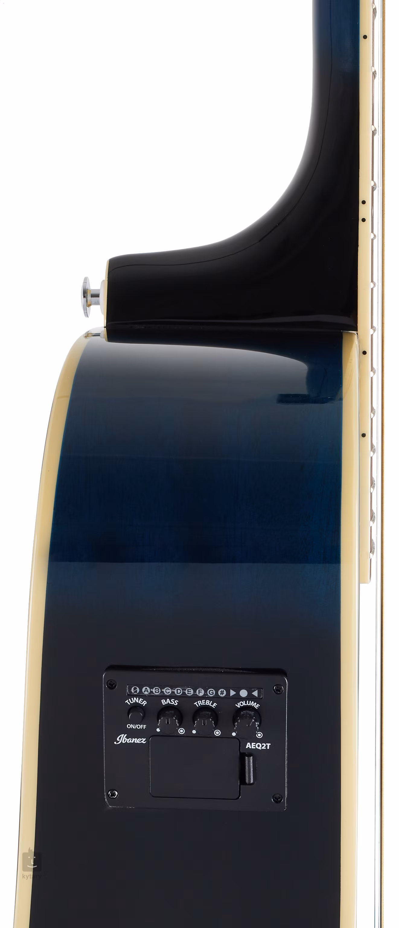 Tato kytara je osazena elektronikou Ibanez AEQ-2T s integrovanou ladičku a podkobylkovým piezo snímačem. Vrstvený korpus kytary je zhotoven z přední smrkové desky a zadní desky a lubů z okoumé. Ke krku z exotického dřeva nyatoh je přilepen hmatník z fíkovníku osazený dvaceti pražci. Rezonanci těla podporuje tradiční X žebrování, orientaci po ploše hmatníku usnadňují poziční tečky. Černý pickguard chrání dřevo nástroje před poškrábáním.