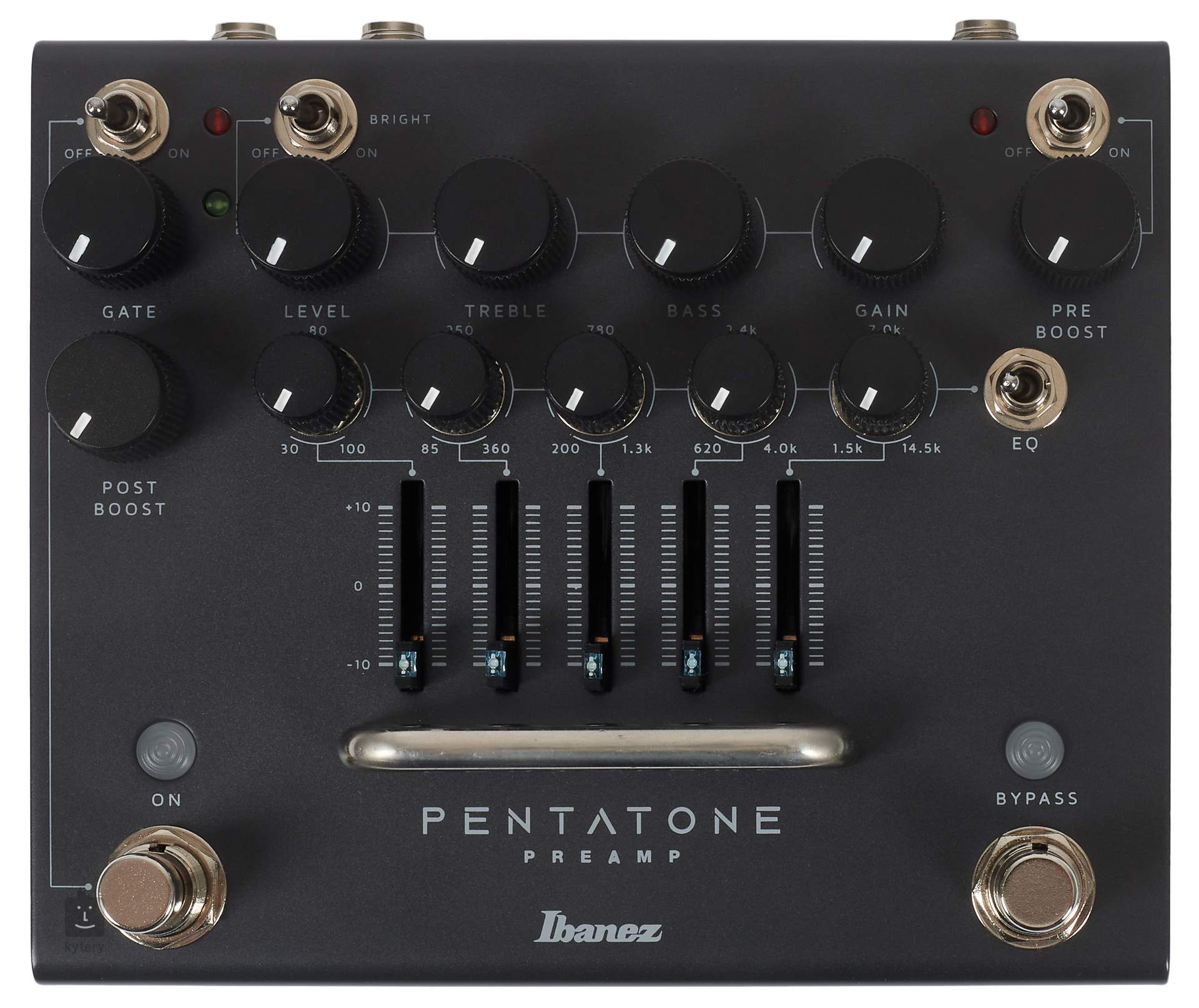 2x FS (Bypass, Post Boost On), Gate, Level, Treble, Bass, Gain, Pre Boost, Post Boost, 5-band EQ, Bright switch, EQ switch