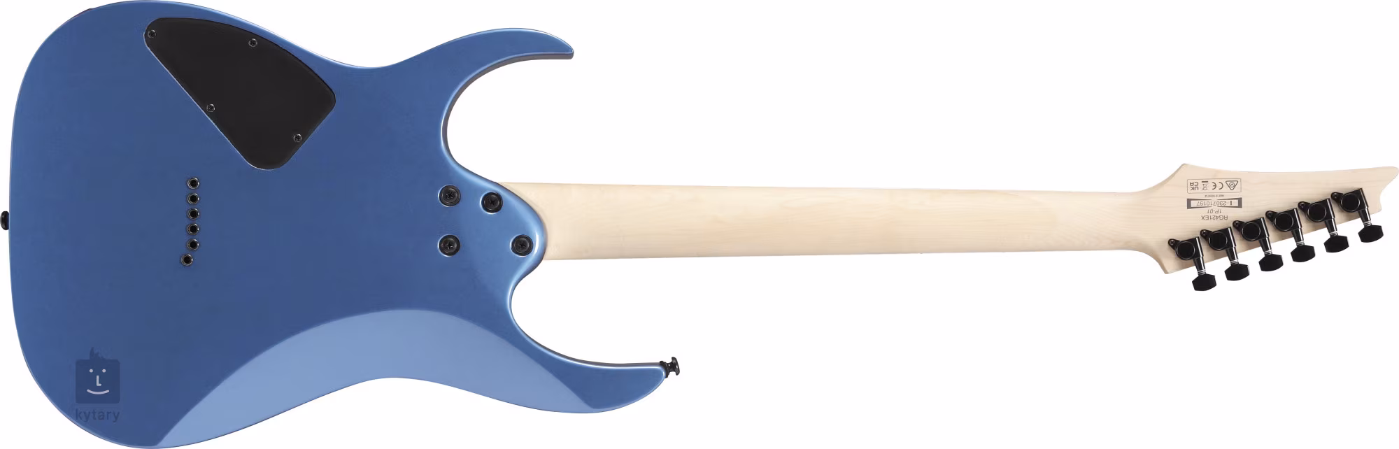 Tělo kytary RG421EX Prussian Blue Metallic je zhotoveno ze dřeva meranti. K rychlému javorovému krku s profilem Wizard III je přilepen hmatník z jatoby osazený čtyřiadvaceti pražci velikosti Jumbo. Orientaci na hmatníku usnadňují bílé poziční tečky.