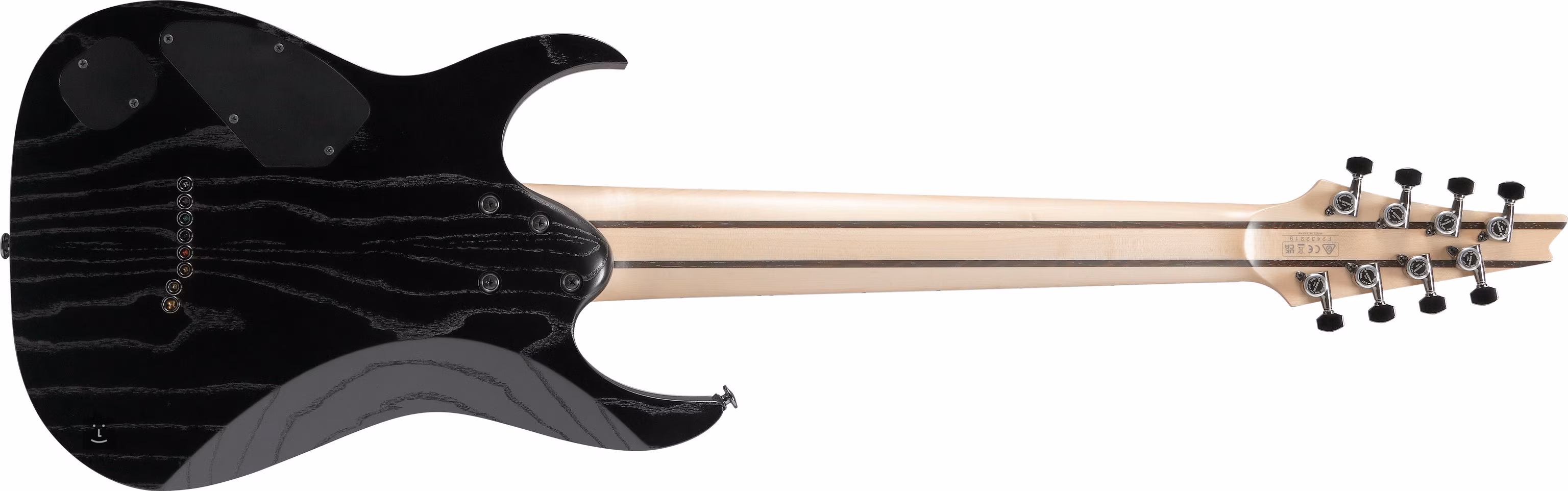 Tělo osmistrunné elektrické kytary RG5328R-LDK je zhotoveno z jasanu. Ke krku složeného z pěti kusů javoru a wenge je přilepen palisandrový hmatník osazený čtyřiadvaceti pražci z nerezové oceli velikosti Jumbo. Upravené hrany hmatníku vám nabídnou větší herní komfort (Prestige fret edge treatment). Orientaci na hmatníku usnadňují perleťové polohové tečky (Mother-of-Pearl) a luminiscenční tečky na boku.