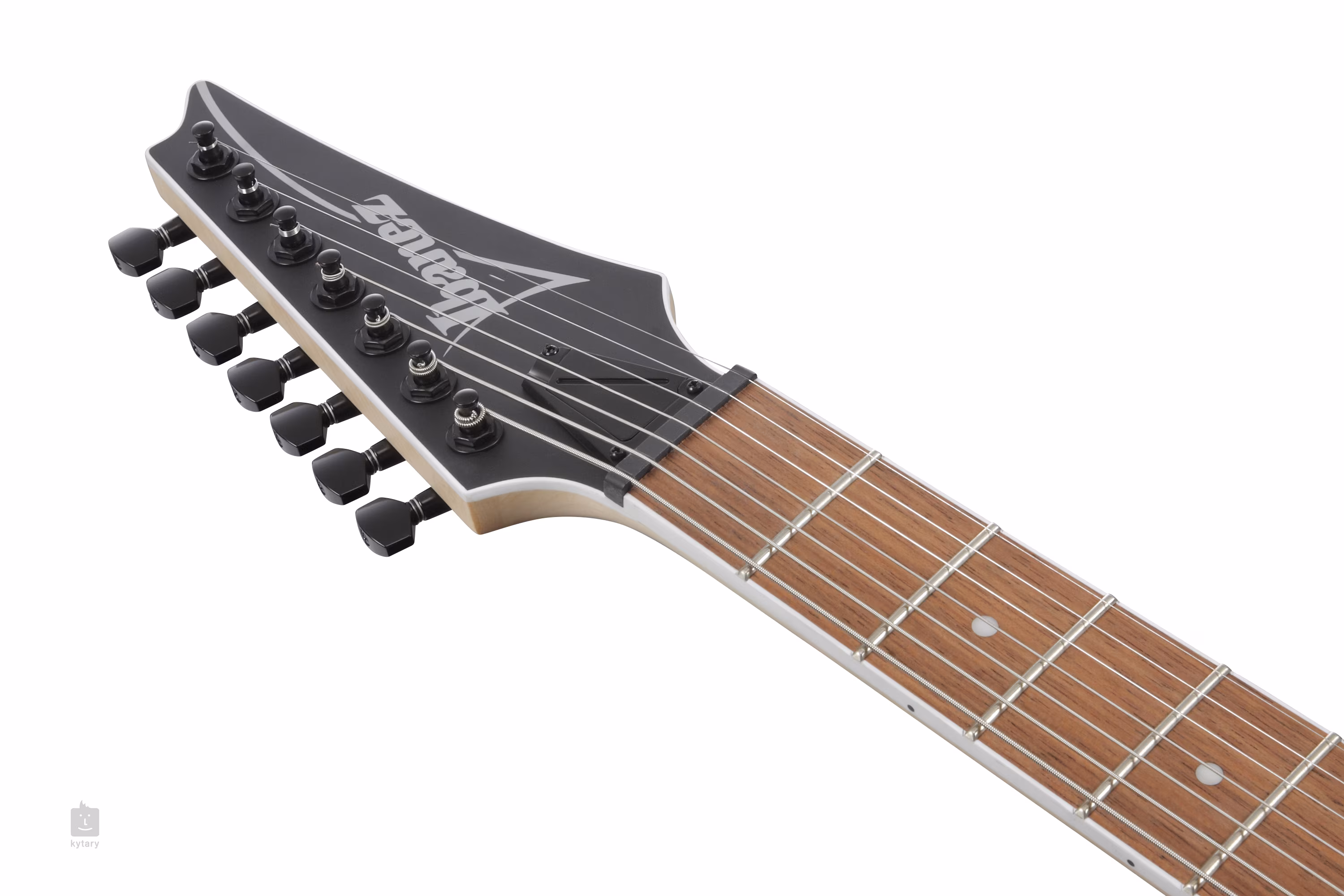Tělo sedmistrunné kytary RG7421EX-BKF je zhotoveno z meranti. K rychlému javorovému krku s profilem Wizard II-7 je přilepen hmatník z jatoby osazený čtyřiadvaceti pražci velikosti Jumbo. Orientaci na hmatníku usnadňují poziční tečky.