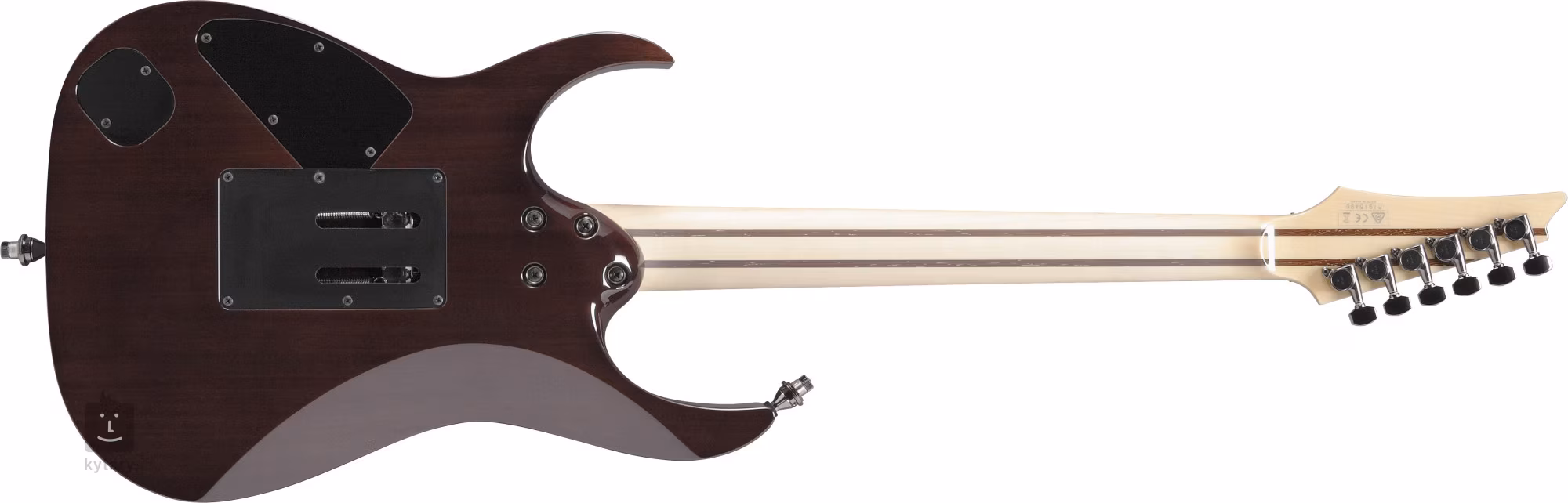 Mahagonové tělo elektrické kytary RG8570 Black Rutile zdobí 4 mm silný top z fládrovaného javoru kvality AAA. K rychlému krku z pěti kusů javoru a wenge s profilem Super Wizard je přilepen hmatník z ebenu makassar osazený čtyřiadvaceti pražci velikosti Jumbo.
