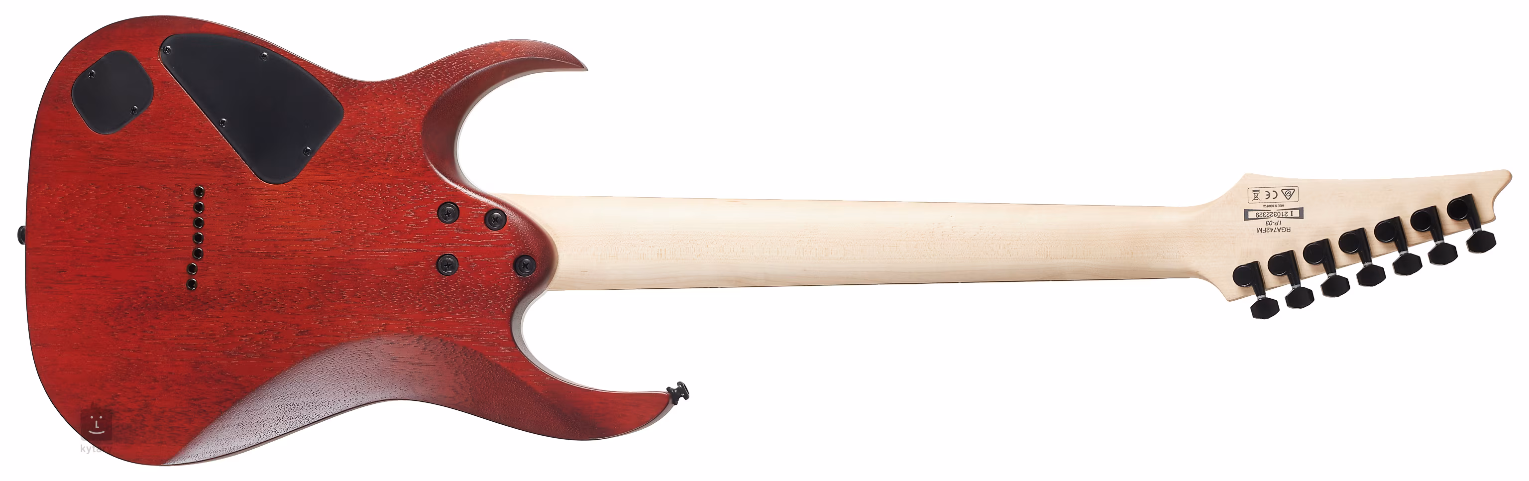 Tělo sedmistrunného modelu RGA742FM-TGF zhotovené ze dřeva meranti zdobí vrchní dýha z fládrovaného javoru. K rychlému javorovému krku s profilem Wizard II-7 je přilepen hmatník ze dřeva jatoba osazený čtyřiadvaceti pražci velikosti Jumbo. Orientaci na hmatníku usnadňují bílé offset poziční tečky.