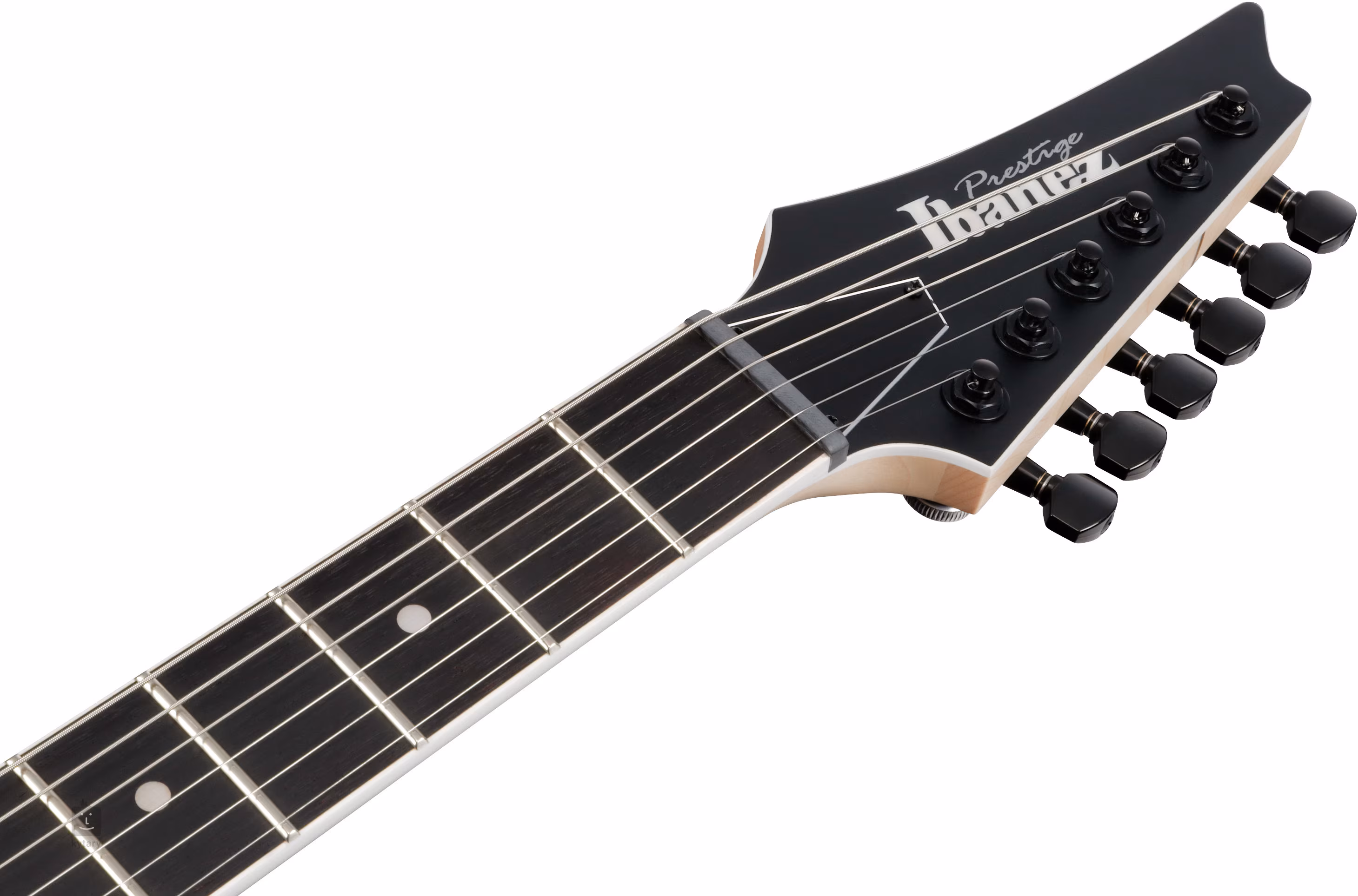 Tělo elektrické kytary RGR662AHBF-WK je zhotoveno z jasanu. Saténová barevná úprava Weathered Black nechává vyniknout kresbě jasanu. K rychlému krku z pěti kusů javoru a ořechu s profilem Super Wizard HP je přilepen palisandrový hmatník osazený čtyřiadvaceti pražci velikosti Jumbo. Jejich upravené hrany vám poskytnou větší herní komfort (Prestige fret edge treatment).