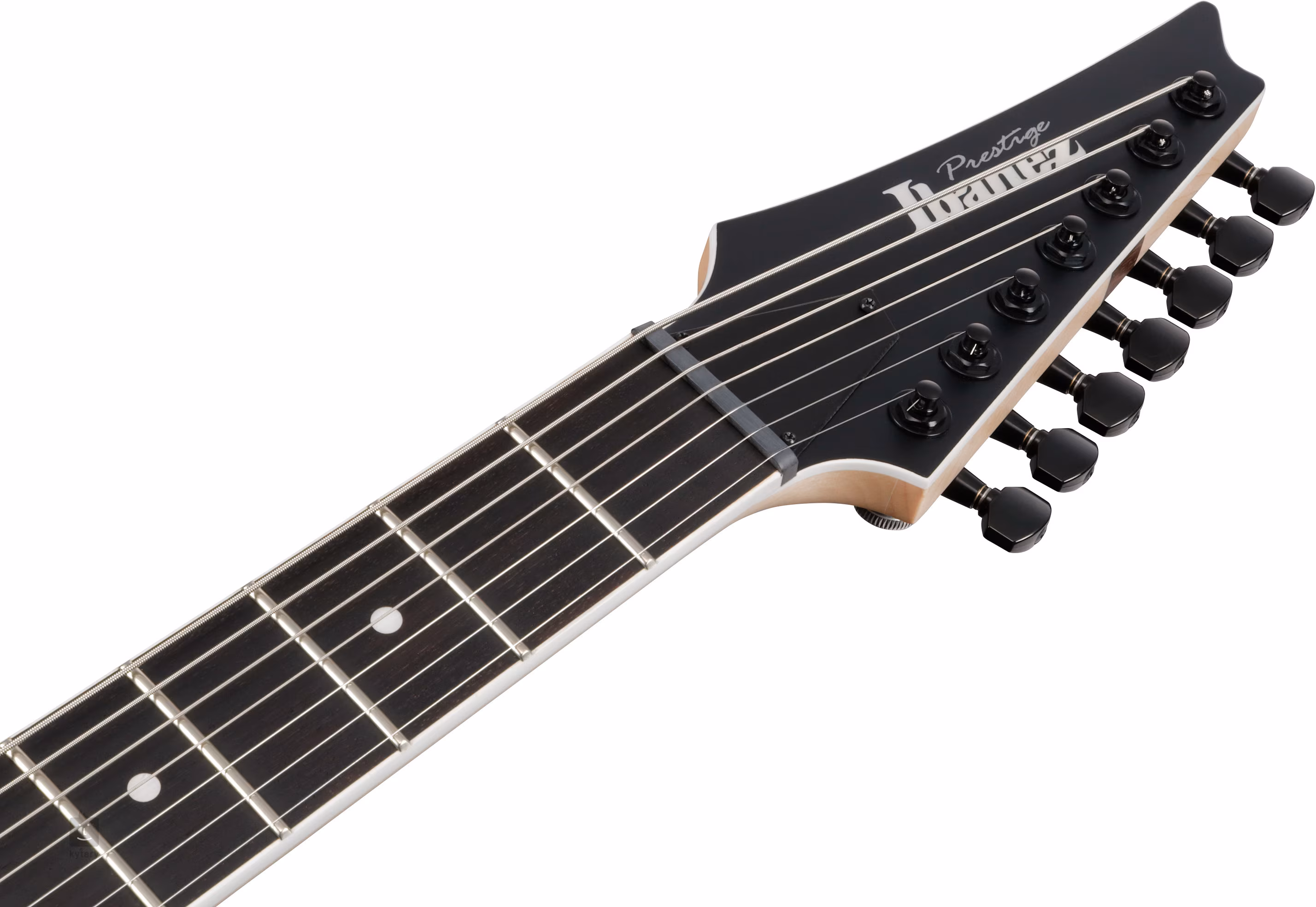 Tělo sedmistrunné elektrické kytary RGR762AHBF-WK je zhotoveno z jasanu. Saténová barevná úprava Weathered Black nechává vyniknout kresbě jasanu. K rychlému krku s profilem Wizard-7 složeného z pěti kusů javoru a wenge je přilepen palisandrový hmatník osazený čtyřiadvaceti pražci velikosti Jumbo. Jejich upravené hrany vám poskytnou větší herní komfort (Prestige fret edge treatment).
