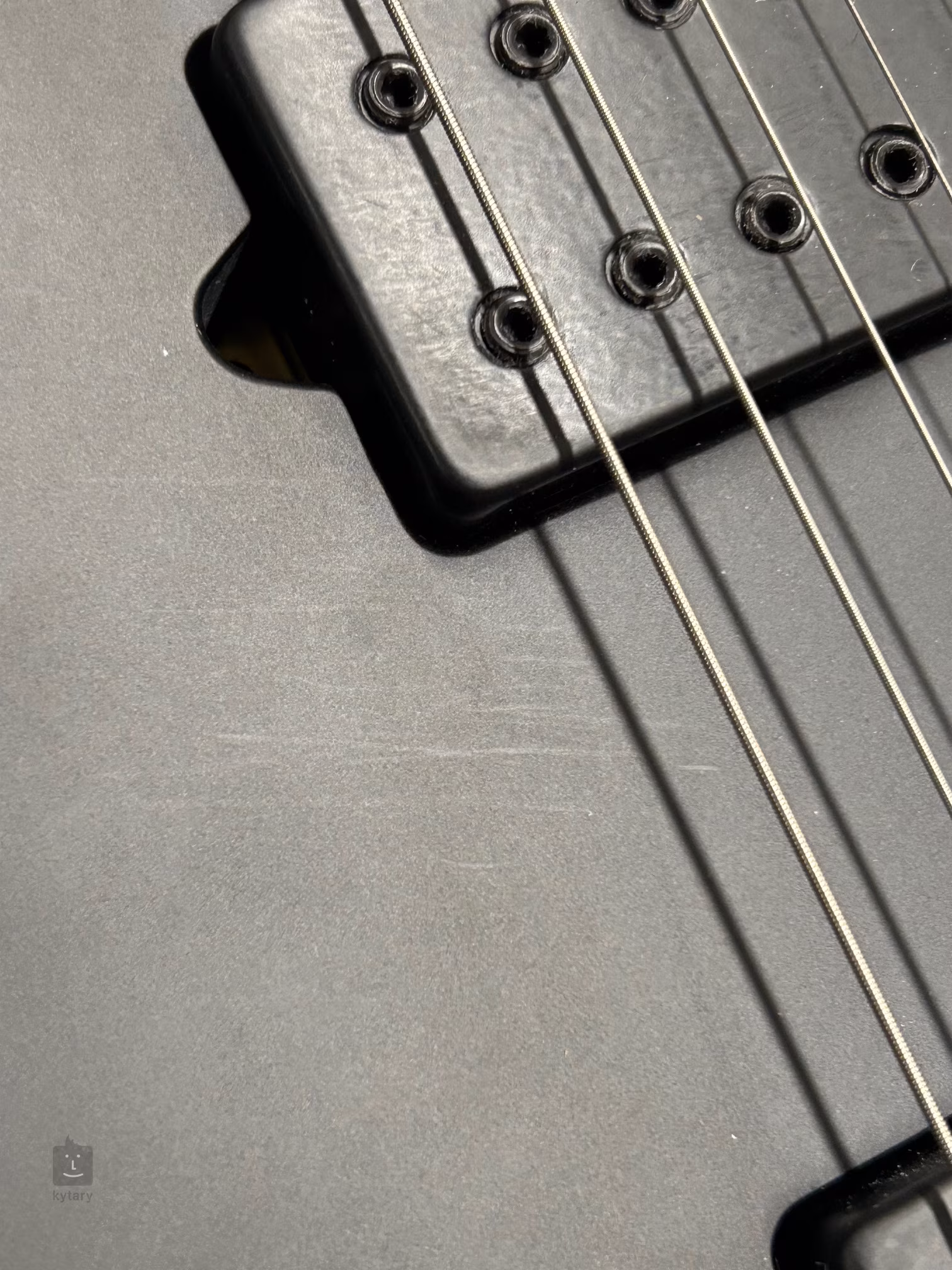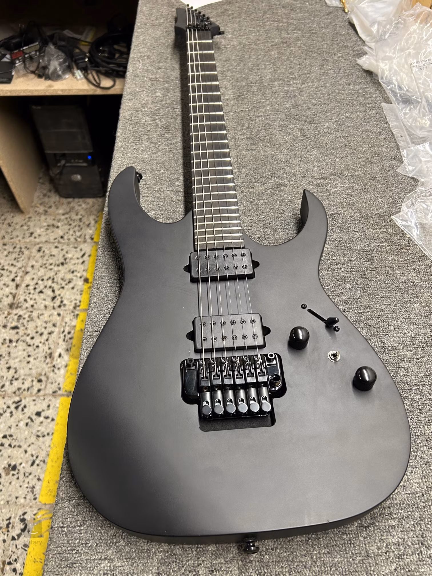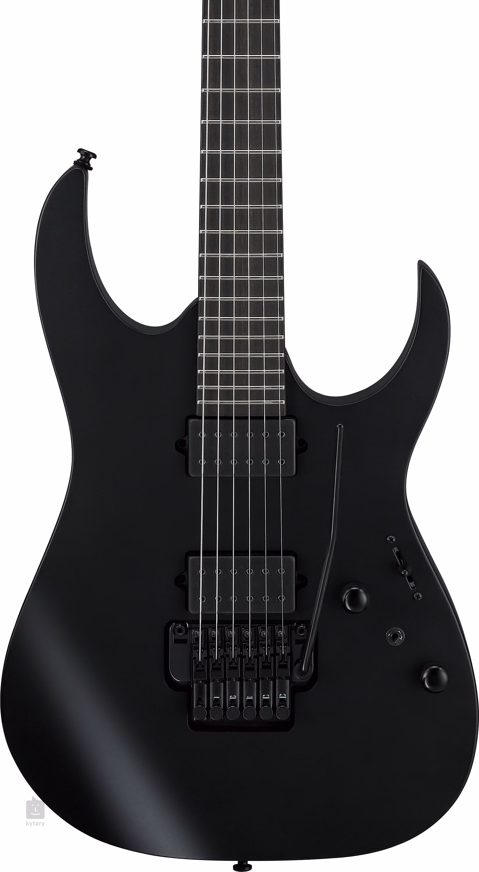 Kytary Ibanez Iron Label charakterizuje firemní slogan “Metal to the Core”. Tedy něco jako “metal až na dřeň” a nic jiného nečekejte - rychlé úzké krky, hluboké špičaté výřezy a strohý design bez prvků, co nemají podíl na hutném metalovém zvuku. Tělo kytary Iron Label RGRB620 Black v RG Super ST designu je zhotoveno ze dřeva nyatoh. K přišroubovanému krku z pěti kusů javoru a ořechu je přilepen ebenový hmatník osazený čtyřiadvaceti pražci velikosti Jumbo. S orientací i za šera vám pomůžou boční luminiscenční tečky. Dva humbuckery značky DiMarzio s keramickými magnety a vysokým výstupním signálem poskytují kytaře velký plný zvuk. Systém přepínání snímačů dyna-MIX 10 (pětipolohový blade switch a dvoupolohový alter switch) nabízí deset různých možností zapojení snímačů, kdy můžete jednoduše přecházet mezi zvuky humbuckerů a single-coil snímačů, a to ve standardním a power tap režimu. Struny jsou uchyceny v ladicích mechanikách značky Gotoh a dvojzvratném tremolu Edge-Zero II, s pomocí kterého vyšperkujete hru působivými zvukovými efekty. Zámky na nultém pražci zaručují stabilitu ladění při častém používání tremolo páky.
