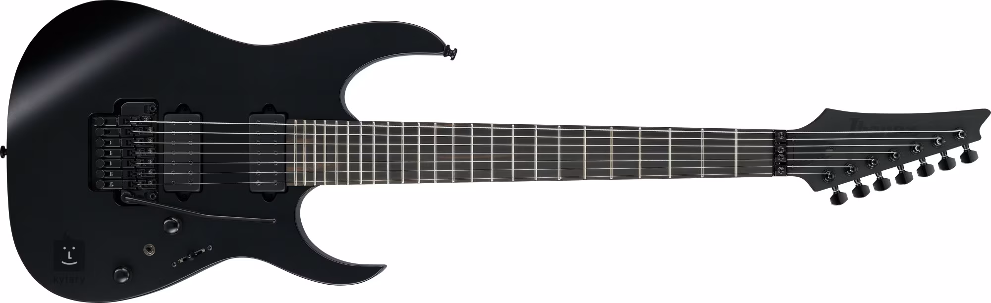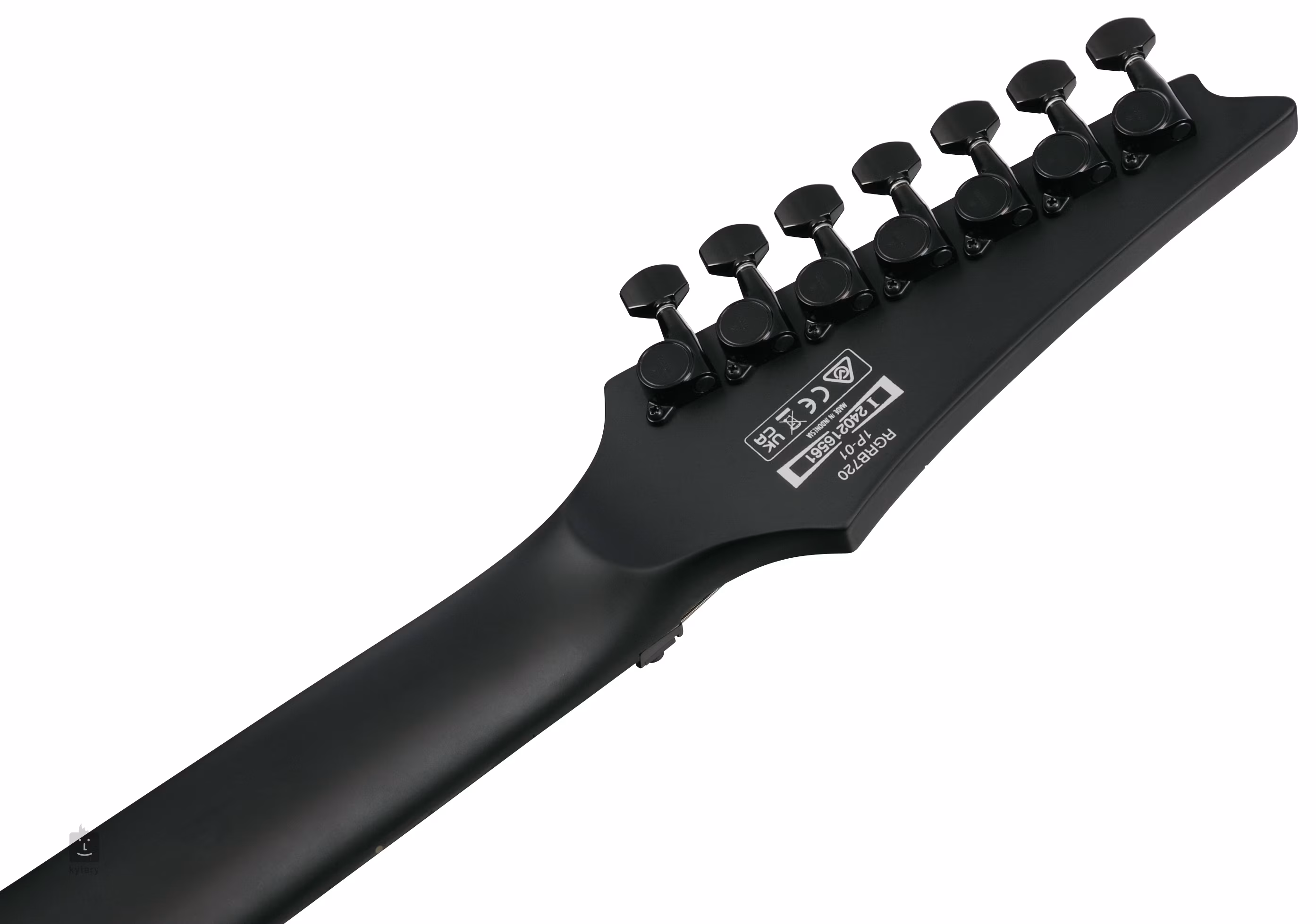 Tělo sedmistrunné kytary Iron Label RGRB720-BKF v RG Super ST designu je zhotoveno ze dřeva nyatoh. K přišroubovanému krku ze tří kusů javoru s rychlým profilem Wizard II-7 je přilepen ebenový hmatník osazený čtyřiadvaceti pražci velikosti Jumbo. S orientaci na hmatníku i za šera vám pomůžou boční luminiscenční tečky.