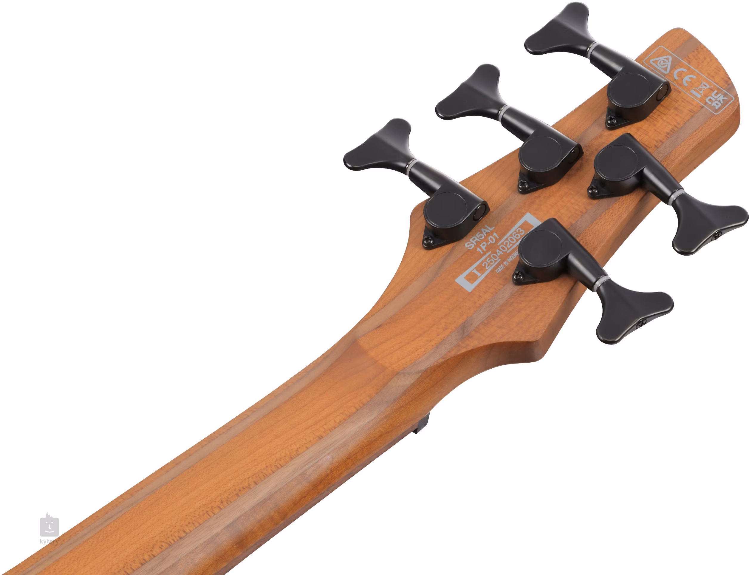 A to platí i v případě pětistrunné baskytary pro leváky Ibanez SR505AL-MHL s tělem ze dřeva okoumé, rychlým pevným krkem z pěti kusů pečeného javoru (roasted maple) a ořechu a palisandrovým hmatníkem osazeným čtyřiadvaceti pražci velikosti Medium. Orientaci na hmatníku usnadňují oválné perleťové polohové značky (abalone).