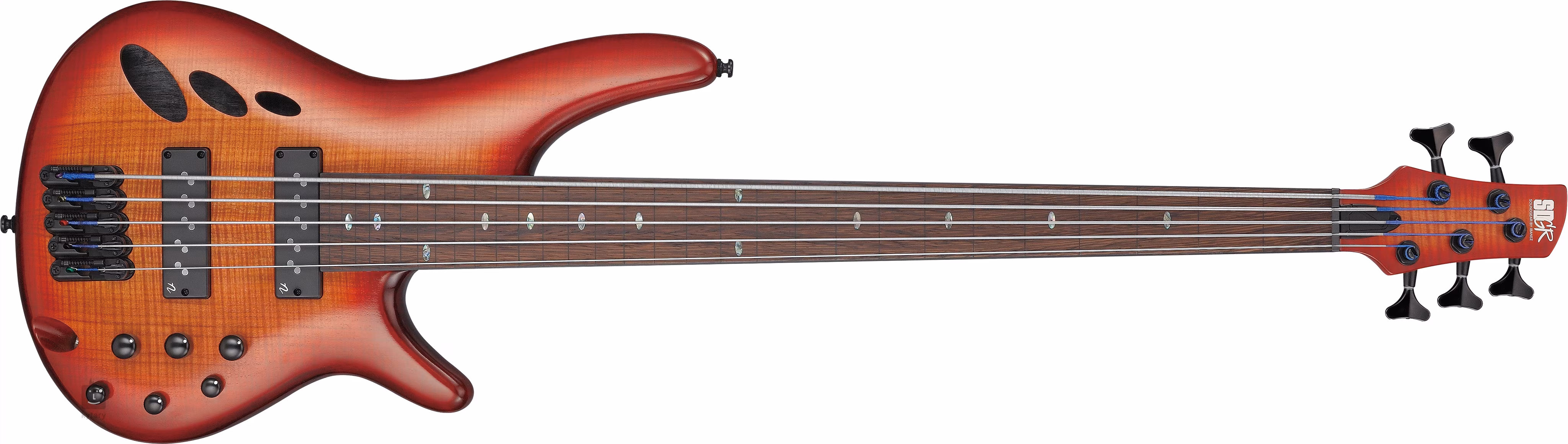 Elektrická bezpražcová baskytara Ibanez SRD905F představuje moderní alternativu s hladkým a rychlým krkem, lehkým tělem a precizně sladěnou elektronikou. Díky konstrukci z pěti vrstev javoru a ořechu nabízí krk vynikající tónovou čistotu a jasný atak. Rozšířený hmatník s 30 pražci umožňuje přístup k vyšším tónům, které jsou obvykle dostupné pouze na kontrabas. Tento design rozšiřuje možnosti hry a přidává nástroji na všestrannosti. Hmatník z dřeva Panga Panga se vyznačuje krásnou strukturou a produkuje pevné basy, silný středový rozsah a ostré výšky.