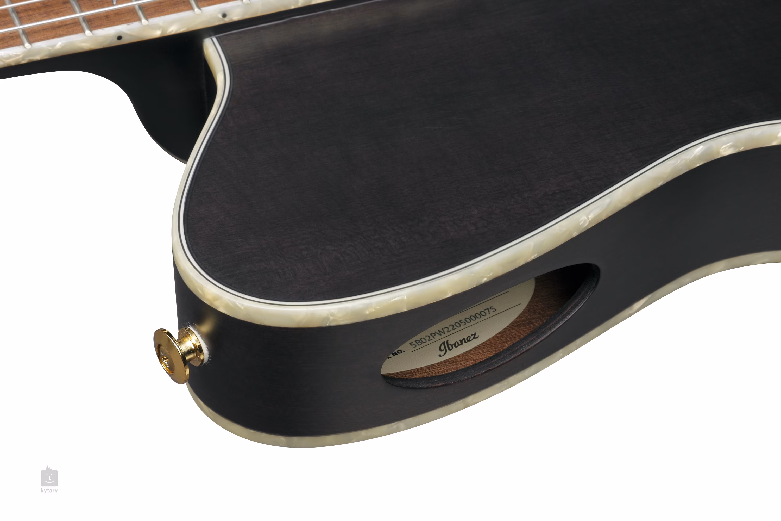 Ke krku ze dřeva nyatoh je přilepen ořechový hmatník osazený dvaadvaceti pražci. Užší nultý pražec a plošší rádius hmatníku nabízí snazší dohmat a dobré herní vlastnosti i muzikantům navyklým na rozměry elektrických kytar. Plochu hmatníku zdobí perleťový inlay “Tree of Death”. Struny jsou ukotveny v tradičních “slotted” mechanikách ve zlatém provedení a ořechové kobylce. Pěkné zpracování podtrhuje oboustranná lemovka těla z imitace perleti.