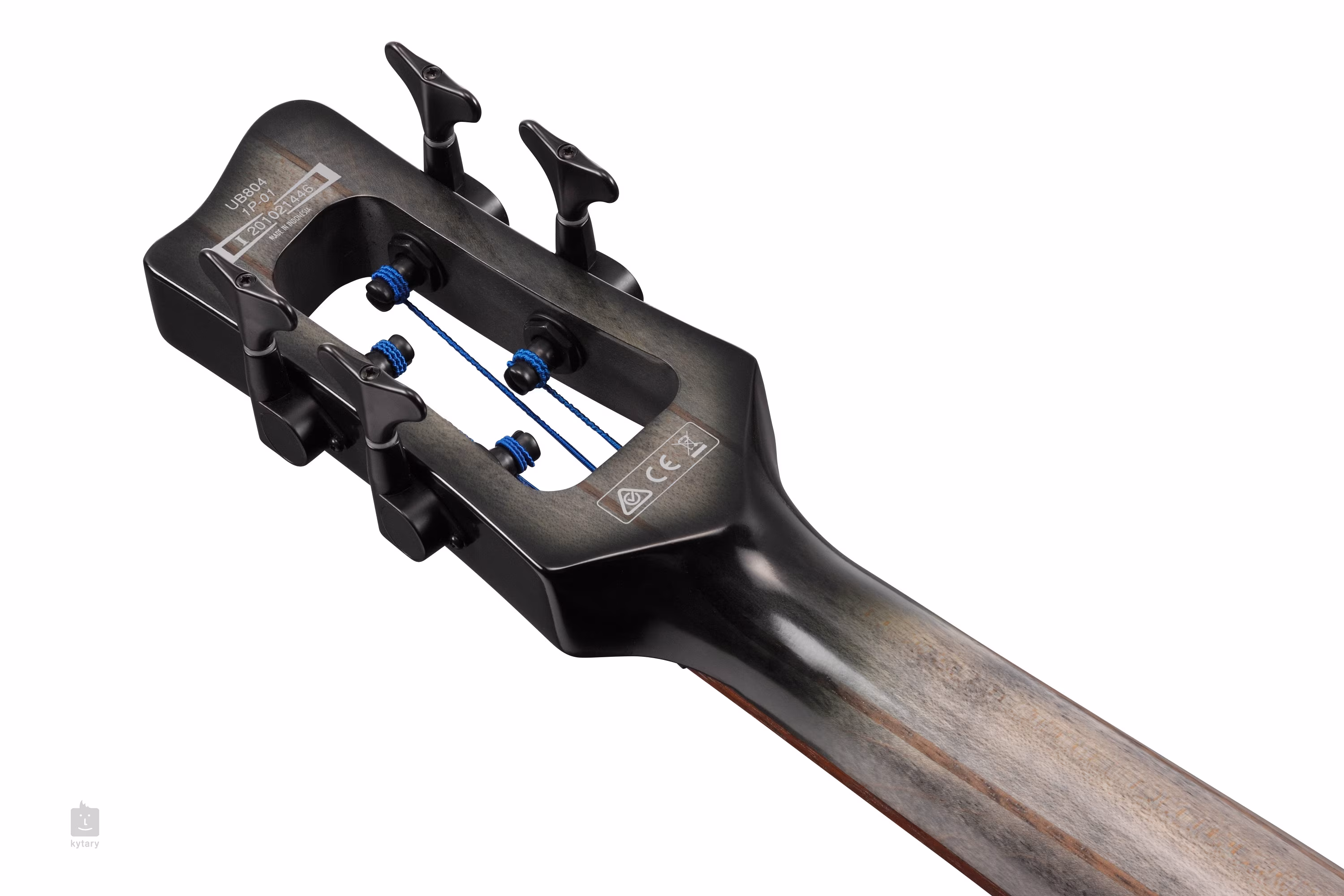 Kvalitní materiály, prvotřídní systém ozvučení a bezchybné zpracování – to jsou hlavní devizy, které přináší elektrický kontrabas Ibanez UB804-BUL. S javorovým tělem v atraktivní barvě Black Ice Burst Low Gloss je příjemně kompaktní, poskytujte však opravdu velký zvuk, důvěrně známý z akustického kontrabasu. Na těle je posazen krk z pěti kusů javoru a ořechu, bezpražcový hmatník je vyroben z jatoby, která vyniká odolností, výbornými akustickými vlastnostmi a exotickou kresbou dřeva. Hmatník se směrem ke kobylce zplošťuje, což výrazně vylepšuje hratelnost zejména ve vyšších polohách. Velkou výhodou je také menzura o 864 milimetrech, která svou standardní délkou potěší všechny hráče na elektrické baskytary.