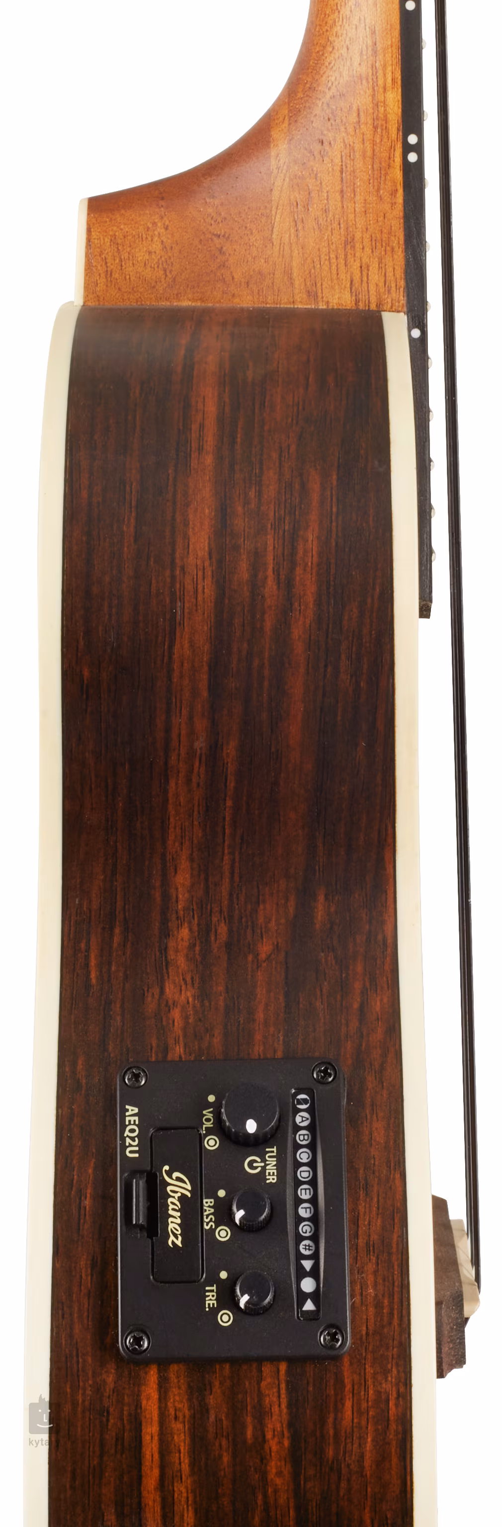 Preamp Ibanez AEQ2U s dvoupásmovým ekvalizérem a integrovanou ladičkou zabudovaný do lubu ukulele nabízí zesílení akustického zvuku, takže s tímto nástrojem můžete směle vystupovat na veřejnosti. Struny jsou uchyceny v chromovaných ladicích mechanikách značky Grover s černými kolíčky a kobylce z purpleheart.