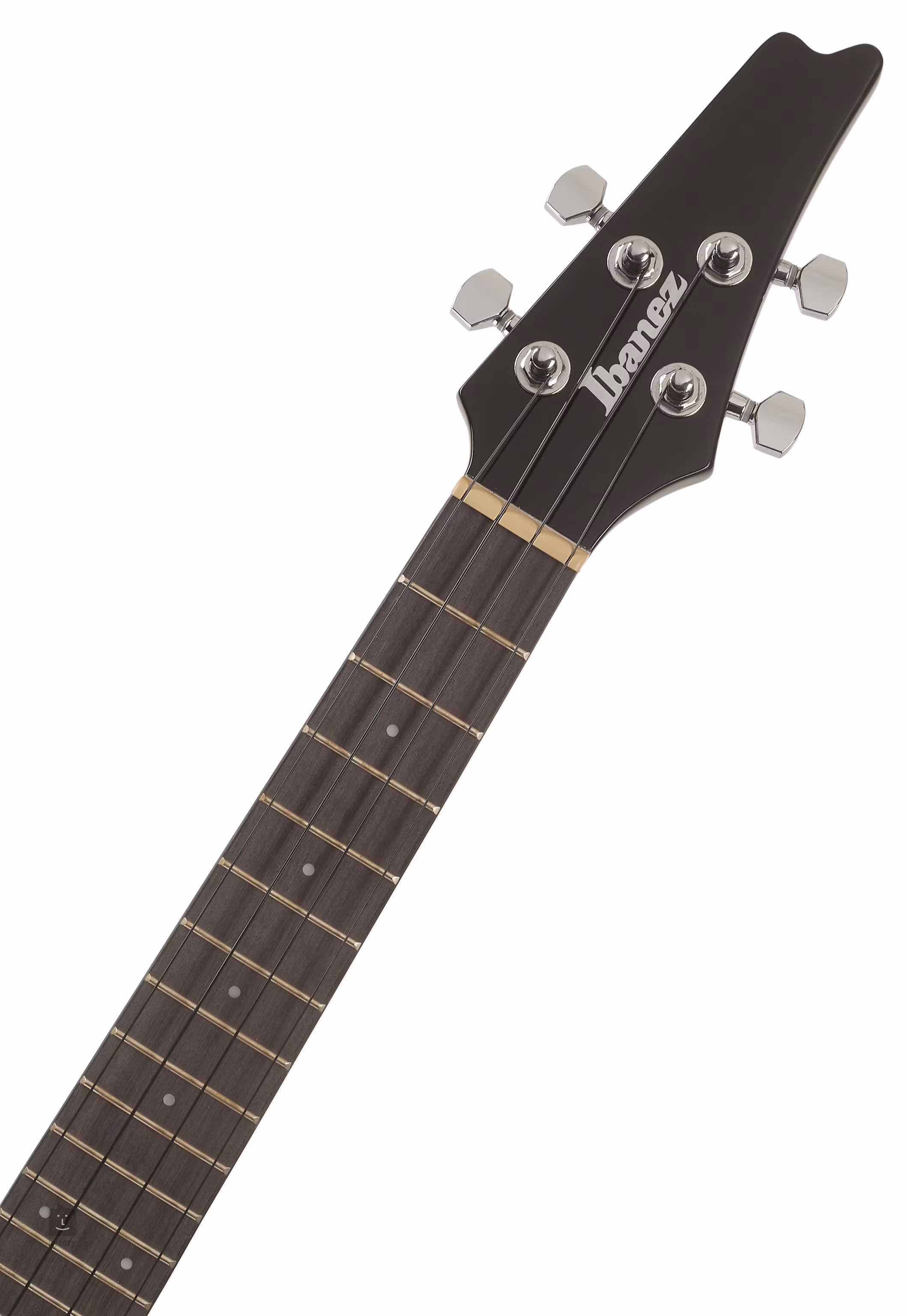 Elektroakustické ukulele Ibanez UICT100-MGS v tenorové velikosti je zmenšenou čtyřstrunnou adaptací známého Ibanez designu elektrické kytary Iceman.