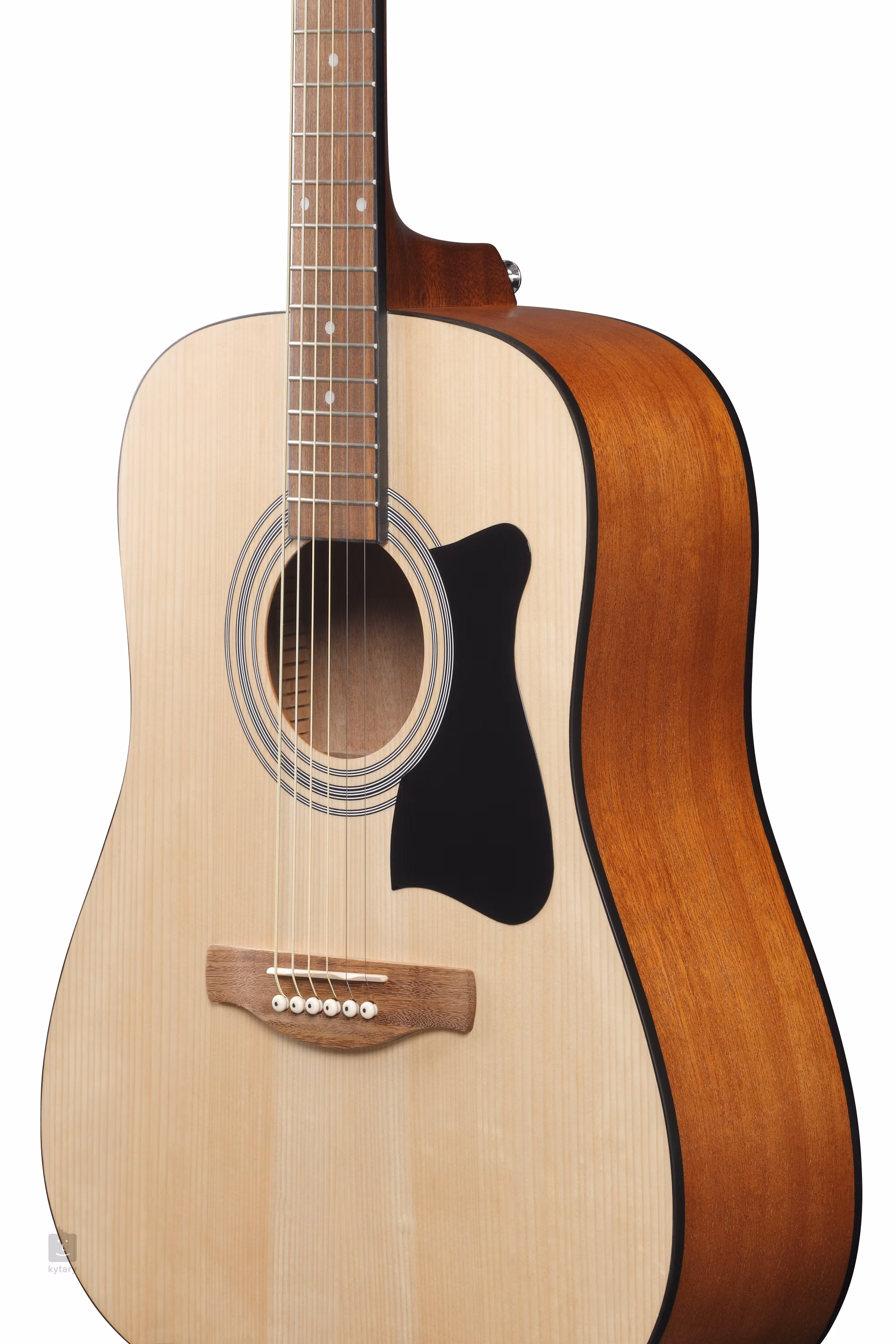 Kytarový pack pro začínající hráče na akustickou kytaru Ibanez V50NJP-OPN zahrnuje kromě akustické kytary typu Dreadnought i kytarový obal (gig bag), klipovou ladičku, kytarový popruh, obal na příslušenství a trsátka.