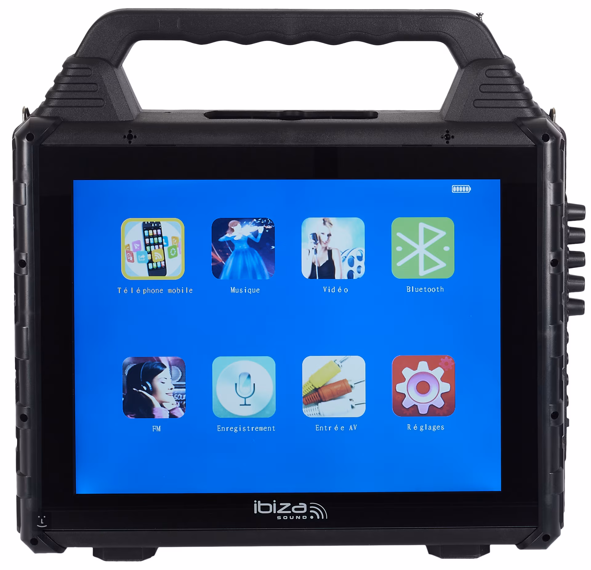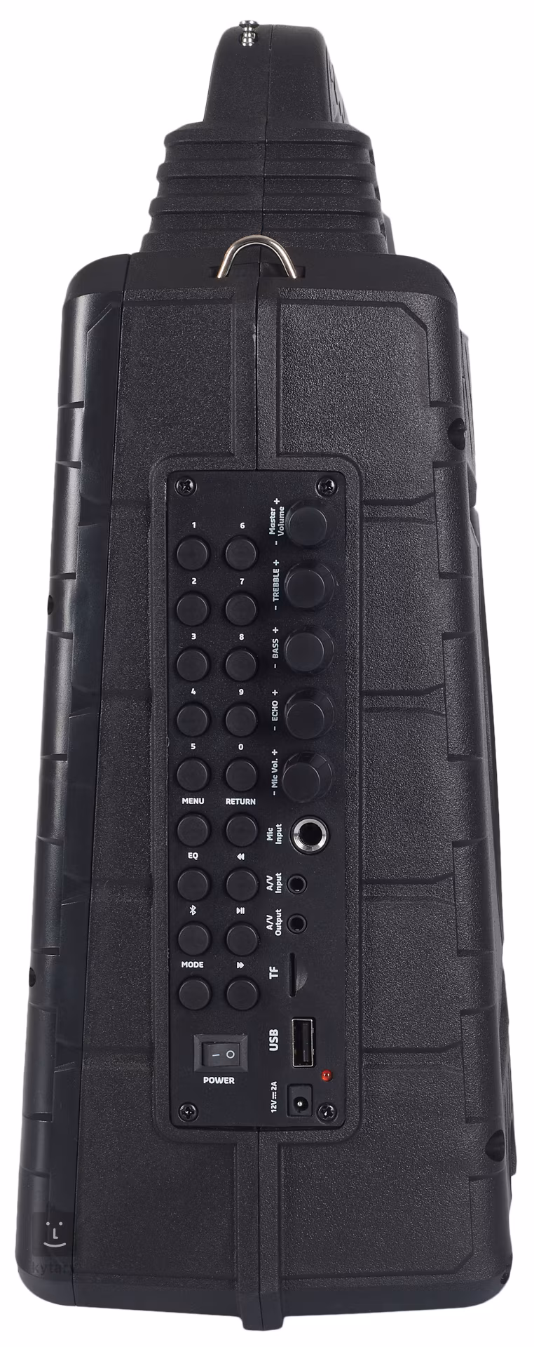 Vysoce výkonný přenosný reproduktor disponující 14,1“ barevným displejem, integrovaným FM rádiem a samozřejmě bezdrátovou technologií Bluetooth pro streamování hudby bez jediného kabelu. Karavision je vhodný pro streamování hudby, hudebních klipů a karaoke párty. Boční strana obsahuje intuitivní ovládací panel pro nastavení přehrávání a mikrofonů, nebo flexibilní konektivitu v podobě AUX vstupu, mikrofonního vstupu, USB portu pro Flash disk, nebo slotu pro SD paměťovou kartu. Integrovaná baterie vám zajistí až čtyřhodinový provoz, takže s tímto reproduktorem s přehledem ozvučíte párty na zahradě, nebo na rodinné oslavě. Součástí balení jsou dva bezdrátové mikrofony pro karaoke párty a pěvecké duely, dálkový ovladač a ramenní popruh, který vám zajistí snadný transport. Karavision nepřehrává skrz Bluetooth pouze zvuk, ale i obraz, to je jeho zásadní konkurenční výhoda oproti běžným bezdrátovým reproduktorům.