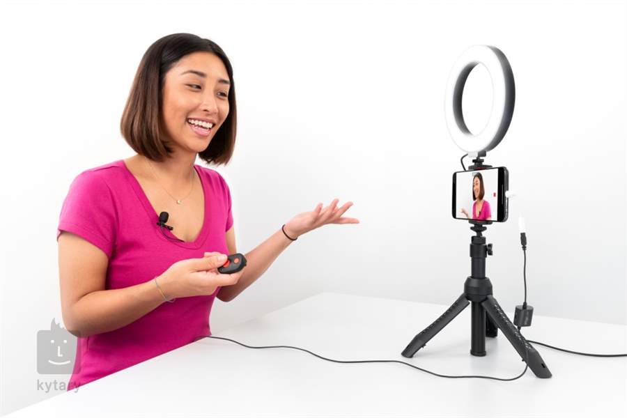 Mikrofon, prstencové světlo, protivětrnný kryt, multifunkční stojan iKlip Grip Pro, držák pro telefon