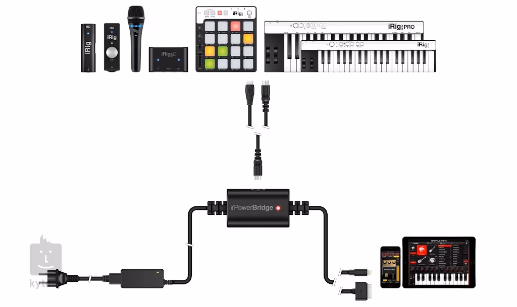 iRig Power Bridge umožňuje nepřetržité nabíjení zařízení iOS při současném používání produktů iRig. Díky tomuto jednoduchému zařízení lze jednoduše hrát na oblíbené iRig produkty a přitom neztrácet energii z baterky telefonu, či tabletu. K dispozici jsou verze jak s Lightning, tak i 30-pinovým konektorem. Power Bridge spolupracuje s iRig produkty obsahující Mini-DIN a Micro-USB porty, jako např. iRig Mic HD, iRig Keys, iRig Pro, iRig HD, iRig Pads a iRig MIDI 2.
