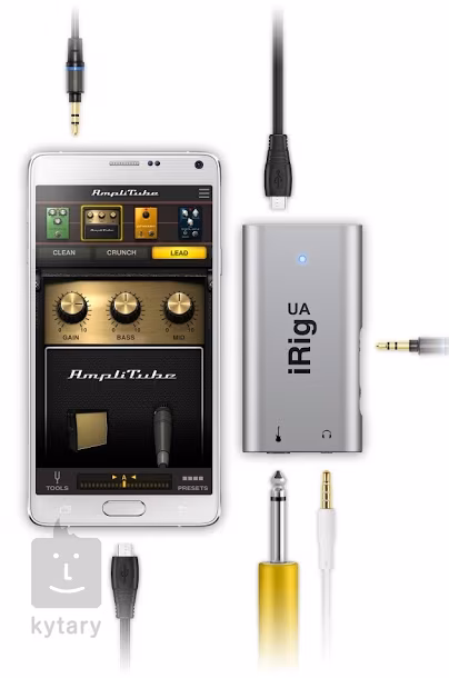 iRig UA s AmplTube UA jsou skvělá dvojka na cesty, pokud potřebujete trénovat. Je vybaven vstupem, do kterého můžete připojit kytaru, basu nebo jiný nástroj i s linkovou úrovní. Součástí je také micro-USB OTG kabel a iRig UA má i nezbytný slzchátkový výstup (3,5mm jack) s regulací hlasitosti.