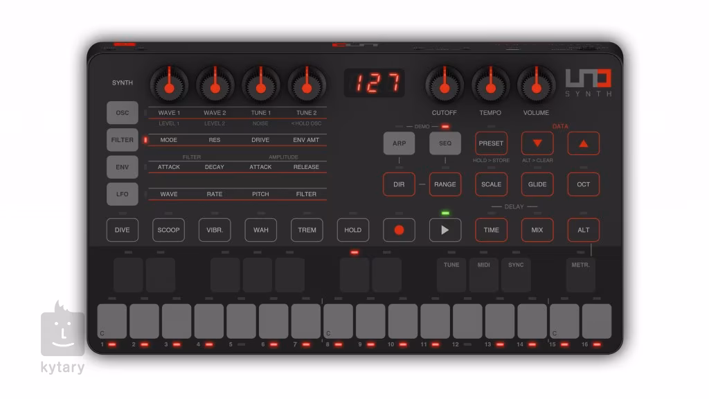 IK Multimedia UNO Synth je pravděpodobně nejdostupnější plně analogový syntezátor na trhu. V kompaktním těle ukrývá plně analogový okruh s dvěma oscilátory, variabilním filtrem, LFO i VCA, klaviaturu, sekvencér, arpeggiator i delay. Navíc ho můžete nabíjet pomocí baterií a vzít si ho všude s sebou. Výrobci nezapomněli ani na MIDI I/O pro snadnou integraci do vašeho stávajícího systému. Analogová syntéza nikdy nebyla dostupnější.
