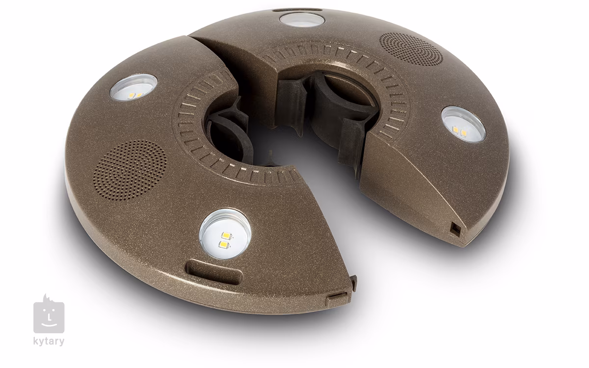Díky Patio Mate se s rozjetou party nemusíte přesouvat dovnitř ani po setmění. Snadno ho totiž nainstalujete přímo na sloup slunečníku a o vše ostatní se už Patio Mate postará sám. Kromě kvalitního přenosu hudby přes Bluetooth je totiž vybaven i několika LED světly, které hosty u stolu nenechají tonout ve tmě. Intenzita světla lze nastavit pro zachování intimní atmosféry a pokud by začalo pršet, vodotěsná norma IPX4 zajistí bezproblémový provoz i při postříkání vodou. Dvojice velkých reproduktorů nabízí stereo zvuk, který si díky nabíjecí baterii můžete vychutnávat po několik hodin.
