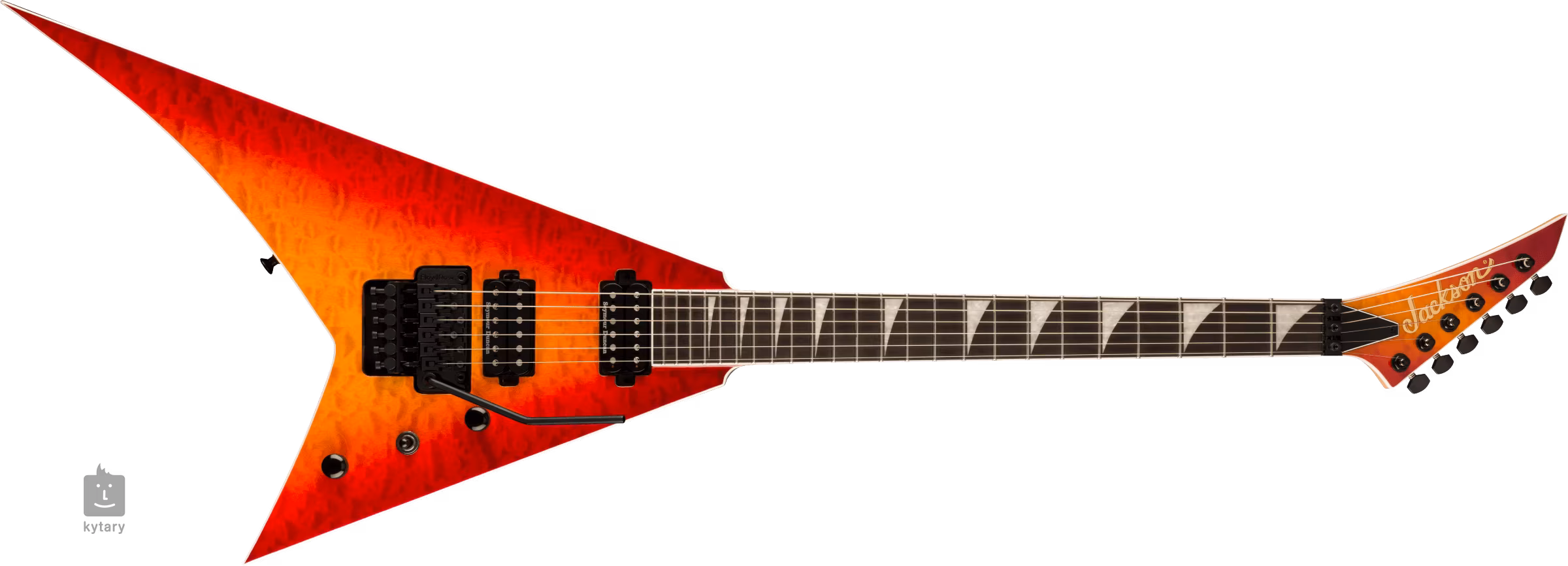 Pro Plus Series Rhoads RR24PS Firestorm je klasické “véčko” Rhoads (Flying V). Konstrukce kytary je složena z křídel těla z okoumé, průchozího olejem ošetřeného krku ze tří kusů javoru a ořechu s grafitovou výztuží a parádní dýhy ze sapele (pommele sapele). Kresbu sapele podtrhuje barevná úprava Firestorm. Ebenový hmatník je osazen čtyřiadvaceti pražci z nerezové oceli velikosti Jumbo. Jeho rádius se směrem k tělu zplošťuje – umožňuje tak jak pohodlné hraní riffů u nultého pražce, tak i komfortní ultra rychlý shred ve vyšších polohách. Orientaci na hmatníku usnadňují polohové značky z imitace perleti (sharkfin) a luminiscenční tečky na boku, které vám zaručí perfektní přehled i na nejtemnějších místech pódií.