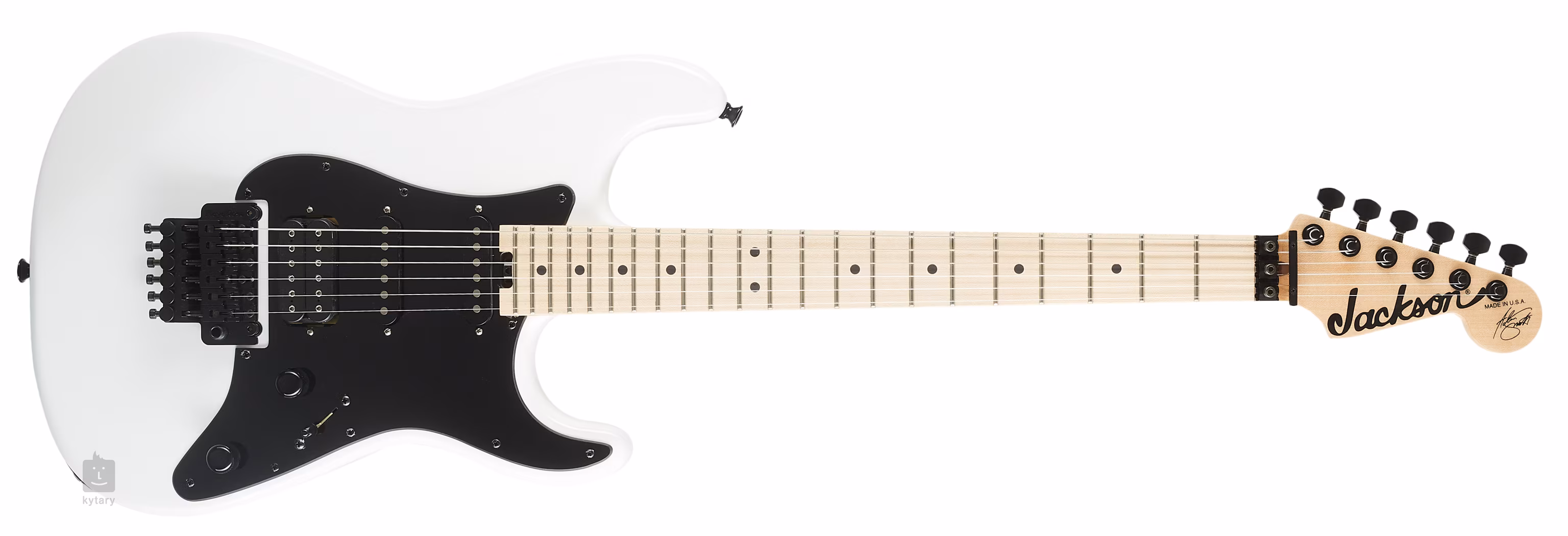 Struny jsou uchyceny ve firemních die-cast ladicích mechanikách a originálním dvojzvratném tremolu Floyd Rose, s jehož pomocí zpestříte hru působivými zvukovými efekty. Stylový design podtrhuje kontrast pickguardu a hardware v černé barvě a barevné úpravy těla Snow White.