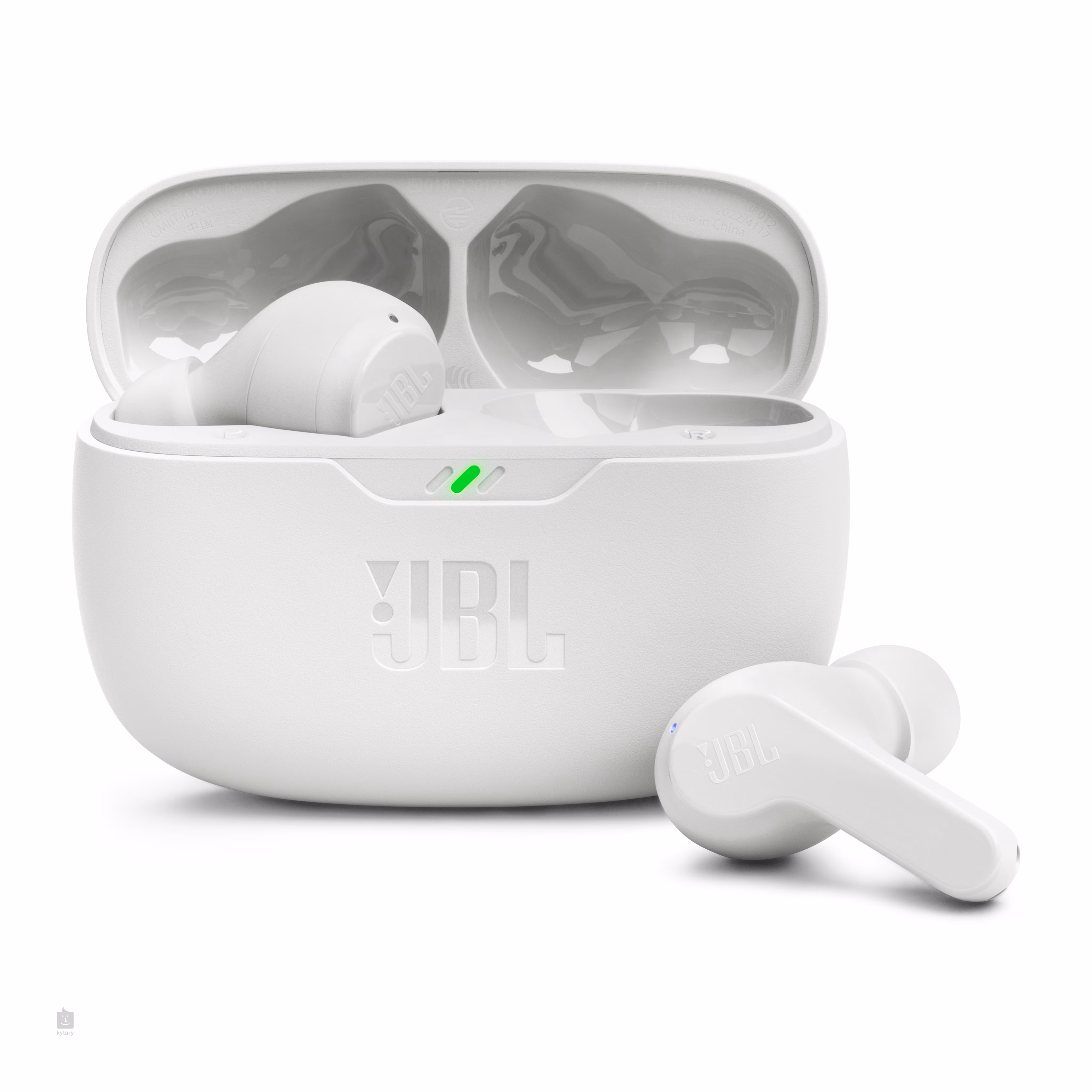 Vezměte si skvělý zvuk kamkoli. Basy, které skutečně ucítíte, celková výdrž baterie až 32 hodin, bezpečný a pohodlný uzavřený design s nožičkou a odolnost vůči prachu i vodě – sluchátka JBL Wave Beam jsou navržena pro vaši každodenní zábavu.