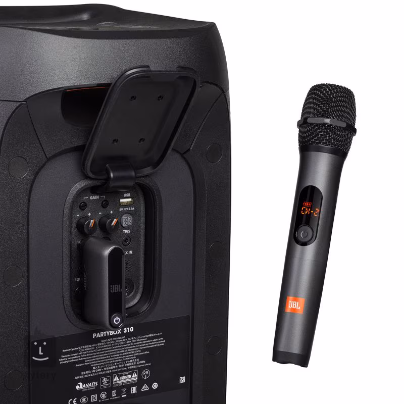 Bezdrátové mikrofony JBL můžete použít s jakýmkoliv reproduktorem s mikrofonním vstupem, ale pro co nejlepší zážitek použijte mikrofon jako doplněk k některému z reproduktorů JBL PartyBox.