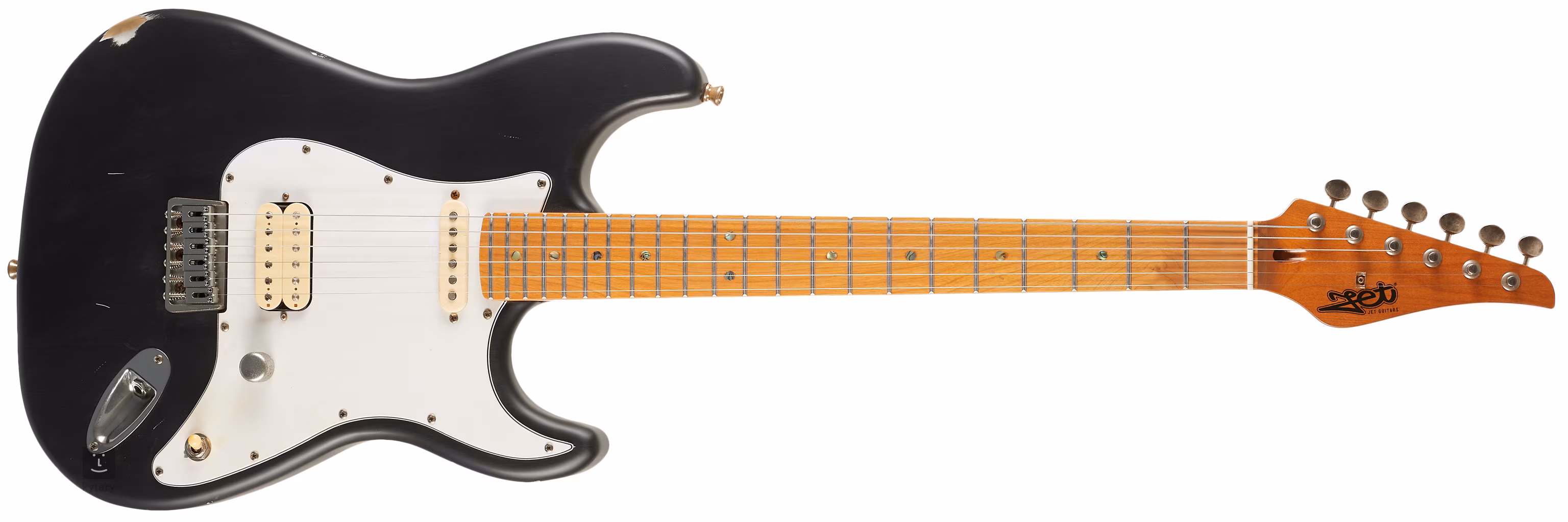 Elektrická kytara JET JS-800 Relic BK je ST model v provedení Relic, tj. nástroj s výraznými prvky umělé patiny. Lipové tělo nástroje tak zdobí množství umělých škrábanců a oděrek barevné úpravy Black Relic. Přišroubovaný krk z kanadského javoru a hmatník nástroje prošly před kompletací tepelnou úpravou, díky které je dřevo stabilnější a zároveň získá vzhled/auru již léty hraných krků/hmatníků, což odpovídá celkovému zadání.