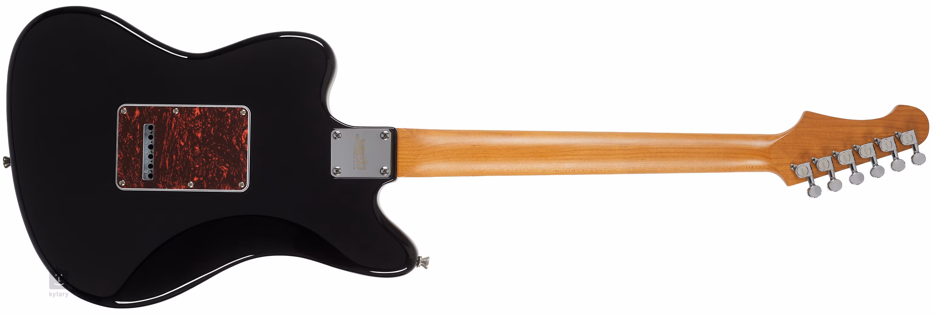 Tělo elektrické kytary JJ-300 P90 BK v dobře známém offset designu je zhotoveno z pečeného topolu. Přišroubovaný krk z kanadského javoru a hmatník nástroje prošly před kompletací tepelnou úpravou, díky které je dřevo stabilnější a kytara zároveň získává vzhled a feel již vyzrálých nástrojů.