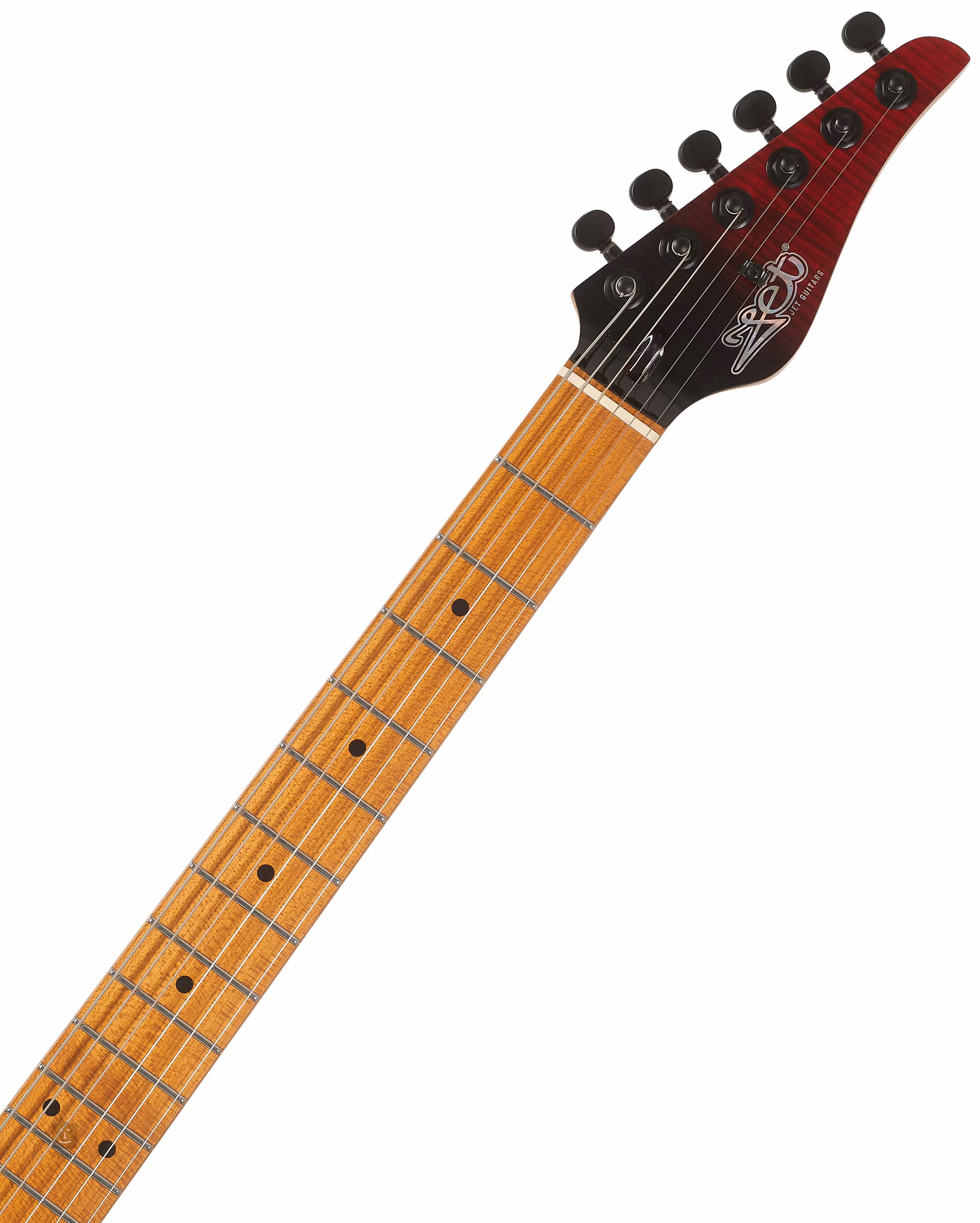 Elektrická kytara JET JS-1000 Vulcano je moderněji pojatý ST/Super ST model. Mahagonové tělo nástroje zdobí dýha z fládrovaného javoru a působivý finiš Flamed Transparent Red. Přišroubovaný krk z kanadského javoru a hmatník nástroje prošly před kompletací tepelnou úpravou, díky které je dřevo stabilnější a zároveň získá vzhled/auru již léty hraných krků/hmatníků.