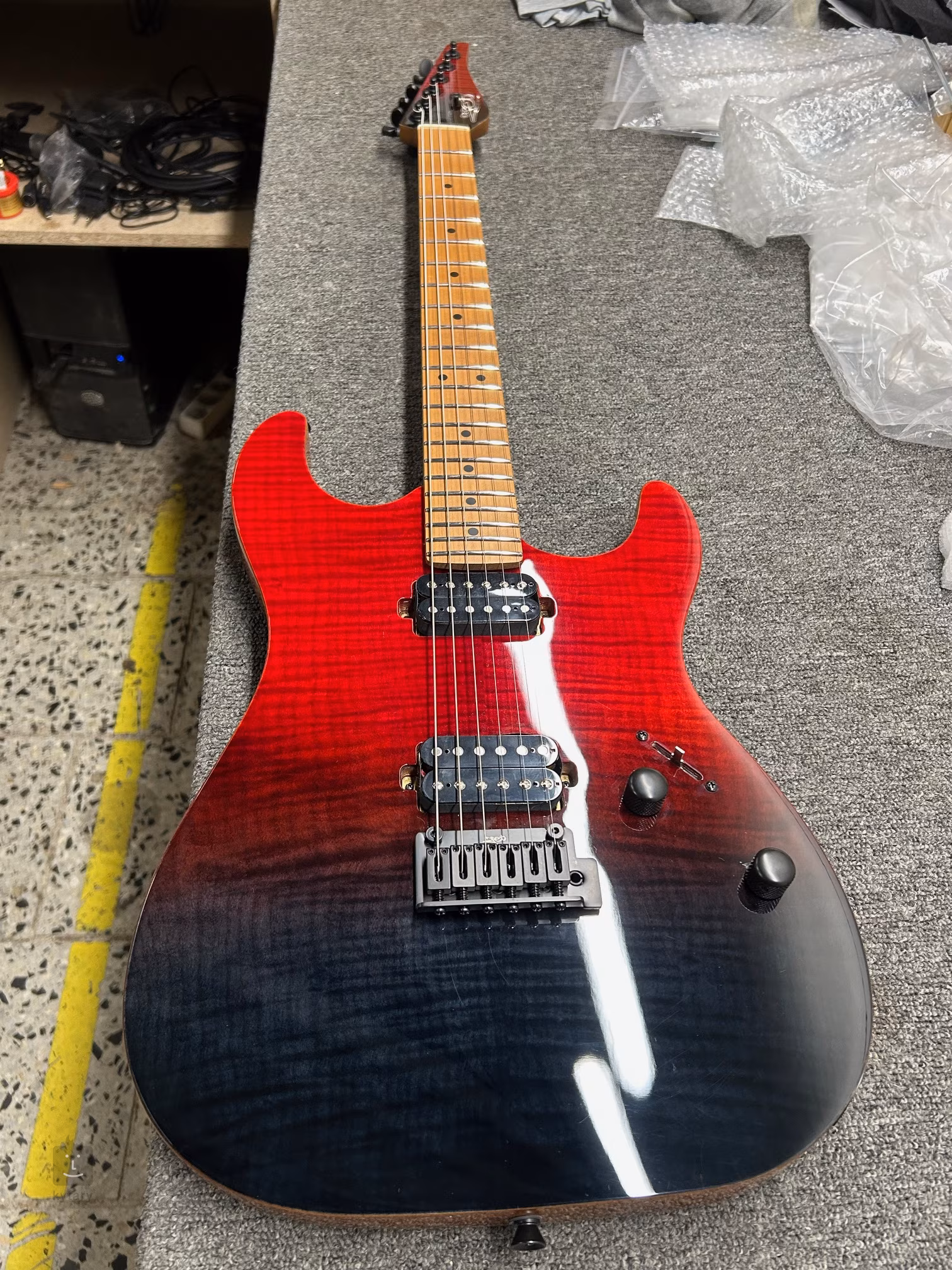 O zvuk kytary se starají dva ručně vinuté humbuckery s Alnico magnety. Charakter zvuku lze tvarovat pomocí potenciometru hlasitosti, tónové clony a pětipolohového přepínače snímačů. Struny jsou přes nultý pražec z kosti ukotveny v uzamykatelných ladicích mechanikách ve stylové černé barvě a tremolu.