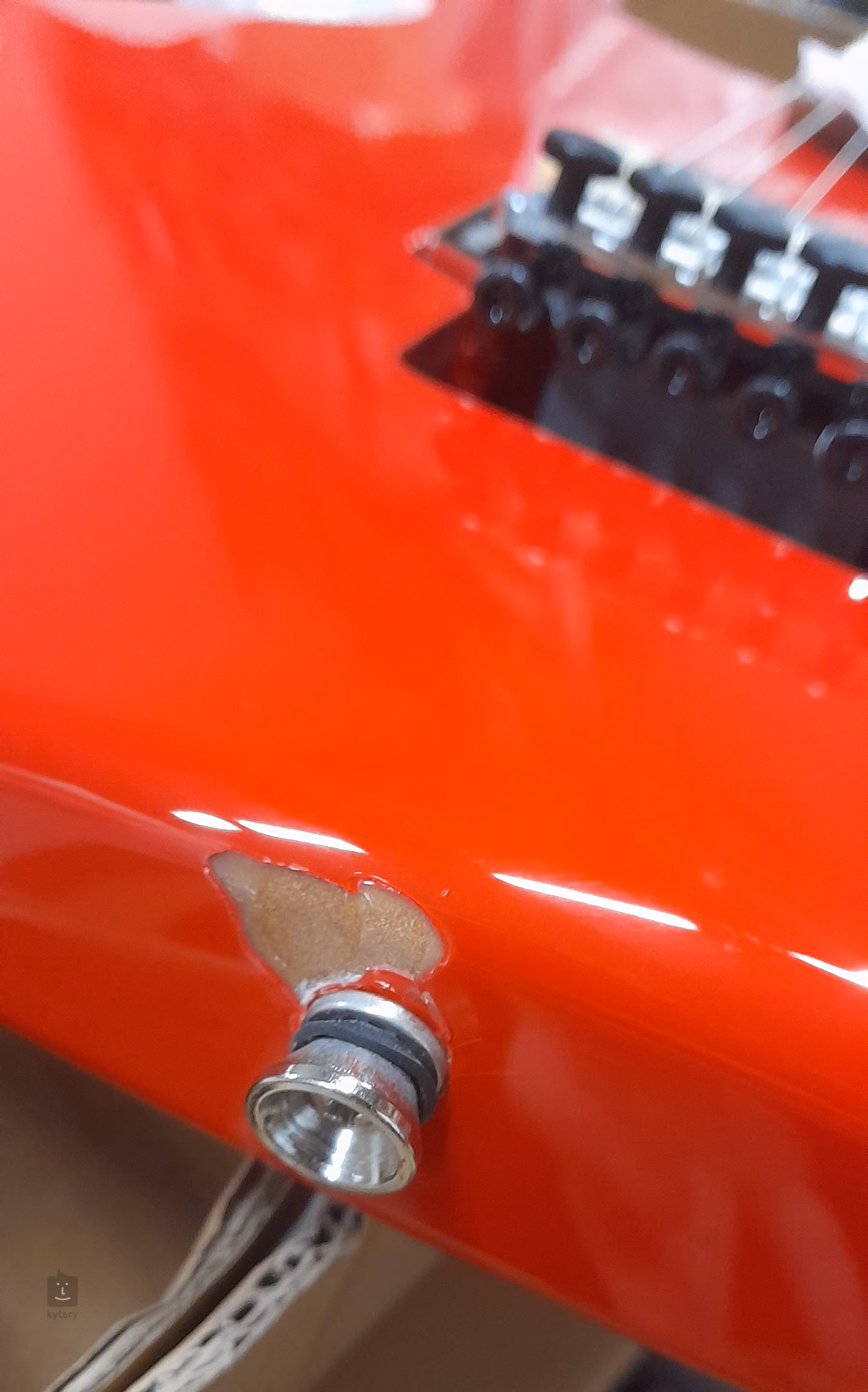 Poškozené zboží - odštípnutý lak u spodní rolny (viz foto).