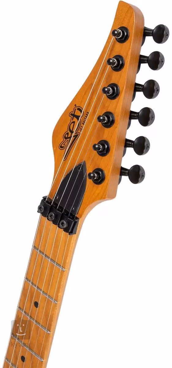 O zvuk kytary se starají dva custom humbuckery se zmíněnými dřevěnými kryty. Kontury zvuku upravíte pomocí standardních ovladačů. Struny jsou uchyceny v dvojzvratném tremolu korejské značky Sung-il. Ladění při častějším používání tremolo páky zajišťují zámky na nultém pražci. Stylové provedení podtrhuje hardware a pickguard v černém provedení.