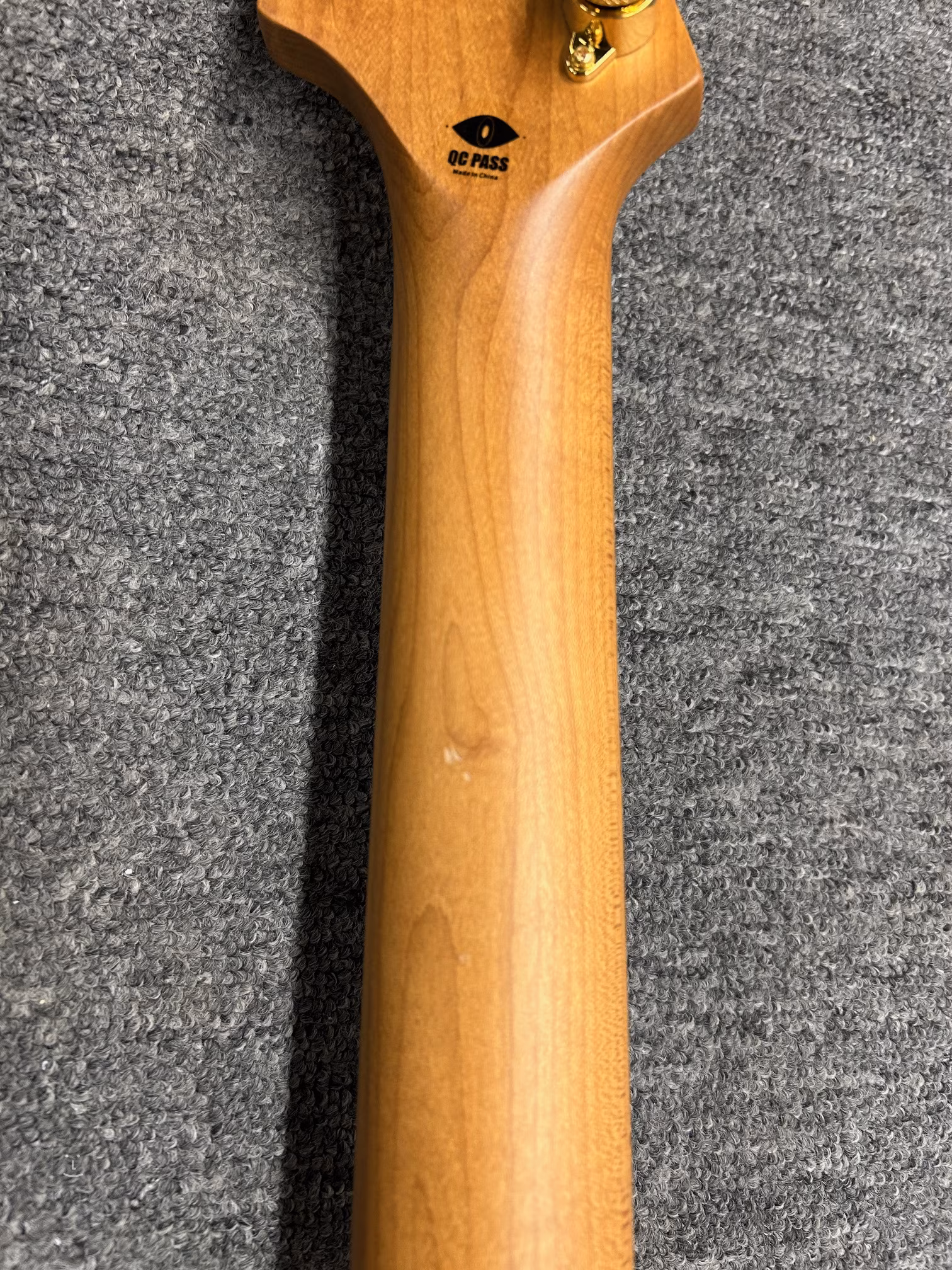 Mahagonové tělo kytary zdobí efektní dýha z fládrovaného javoru a finiš Brown Sunburst. Přišroubovaný krk z kanadského javoru a hmatník nástroje prošly před kompletací tepelnou úpravou, díky které je dřevo stabilnější a zároveň získá vzhled/auru již léty hraných krků/hmatníků.